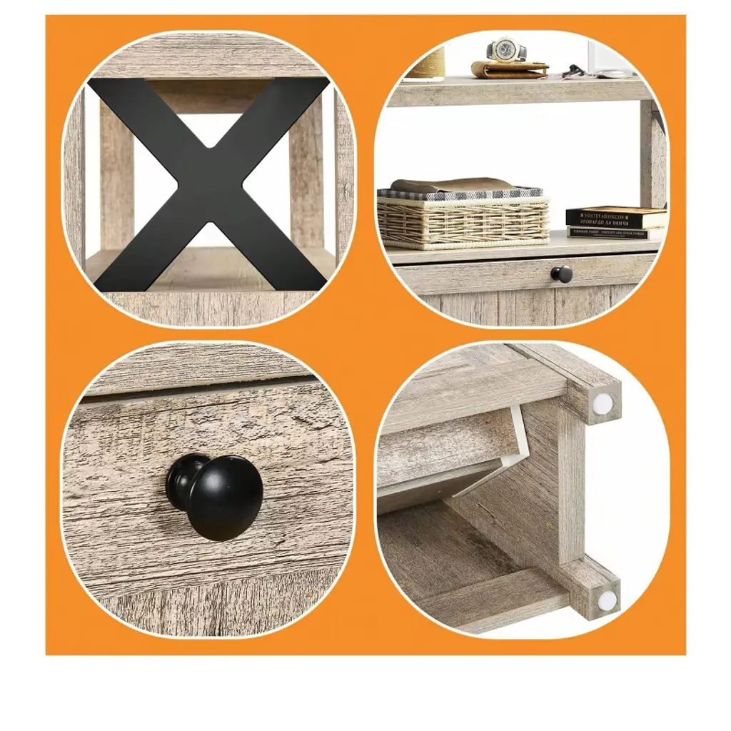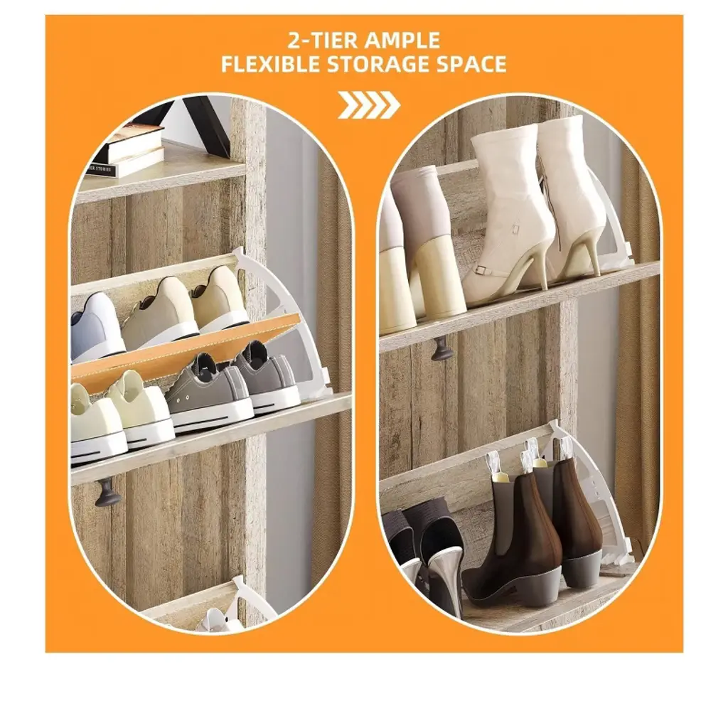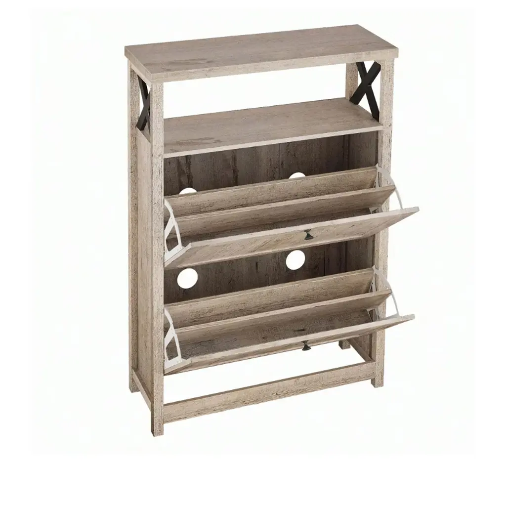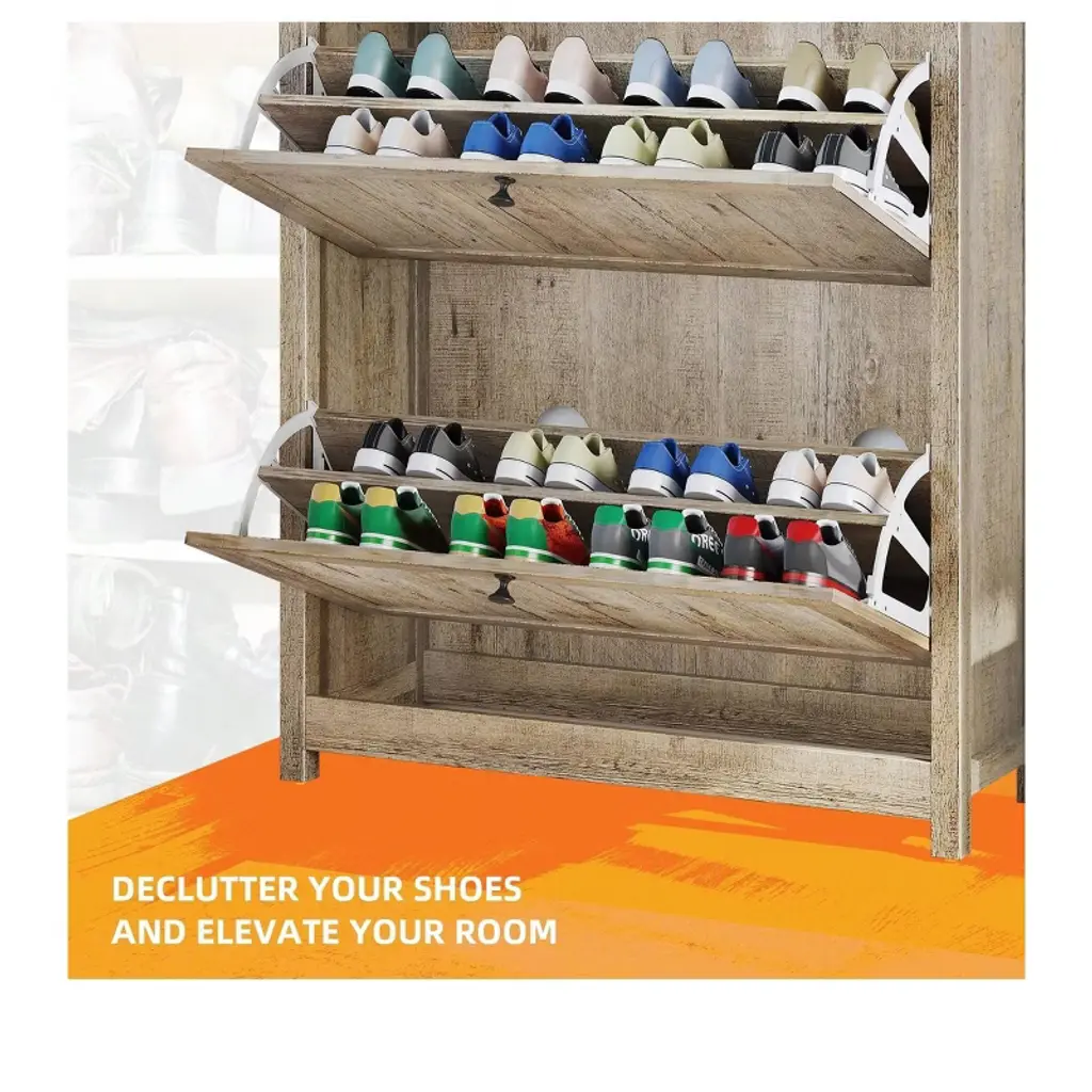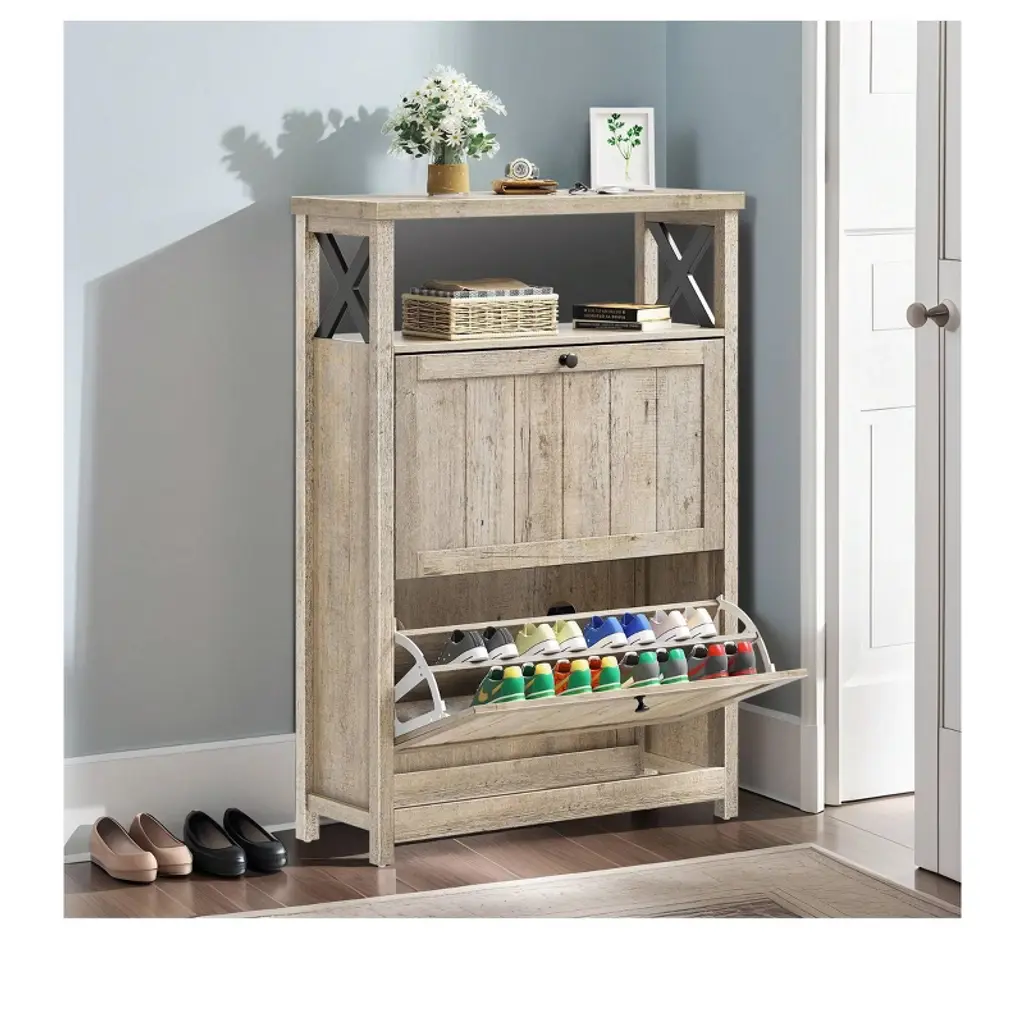 Entryway Shoe Storage Cabinet With 2 Flip Drawers & Open Shelves Free Standing