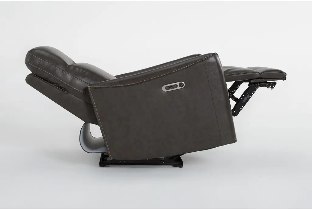 Enzo Charcoal Leather Flexsteel Power Zero Gravity Recliner With Power Headrest & Usb | Lay-Flat Reclining | Smart | Flat