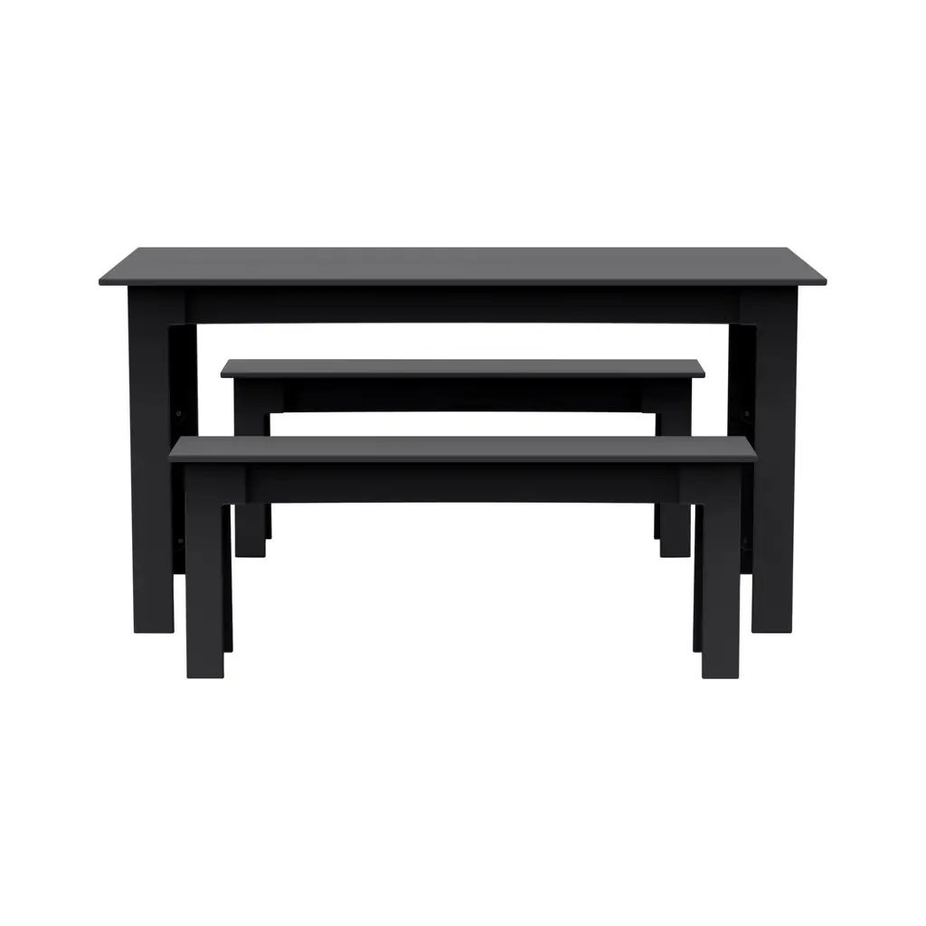 Named for the Greek goddess of dawn, the Eos Collection (2011) is lightweight - literally and visually - smartly proportioned, and very comfortable. The Eos Communal Table and Chairs are constructed of powder-coated aluminum, a rust-resistant material that stands up to the elements. The sleek table is big enough to host backyard barbecues and dinner parties, and the included chairs or benches create a simple, cohesive outdoor dining solution. A center hole with a removable plug makes it easy to add or remove an umbrella. Made in China.
