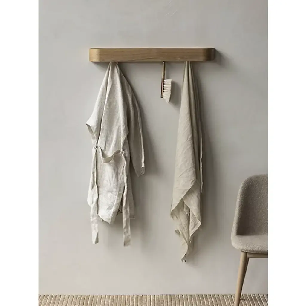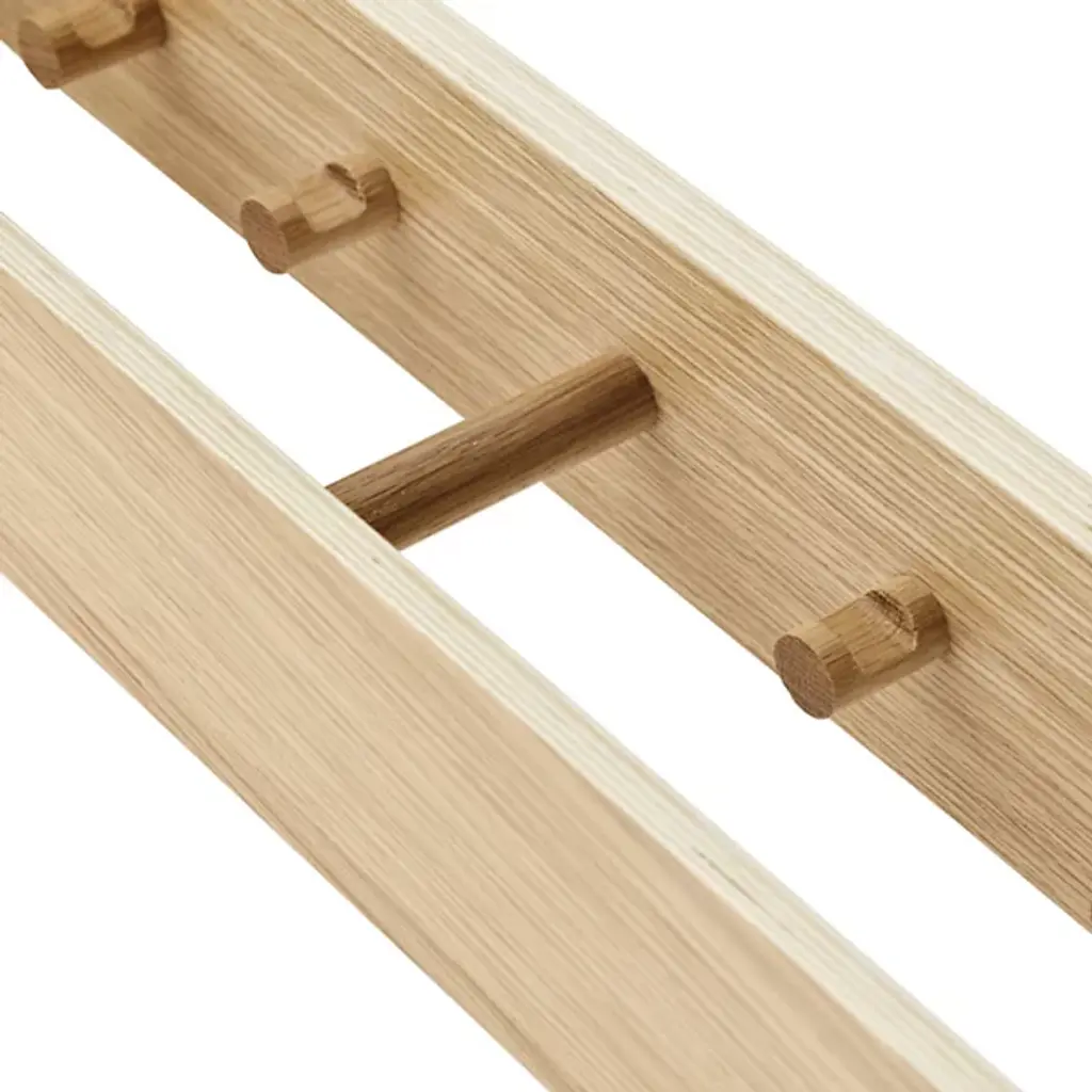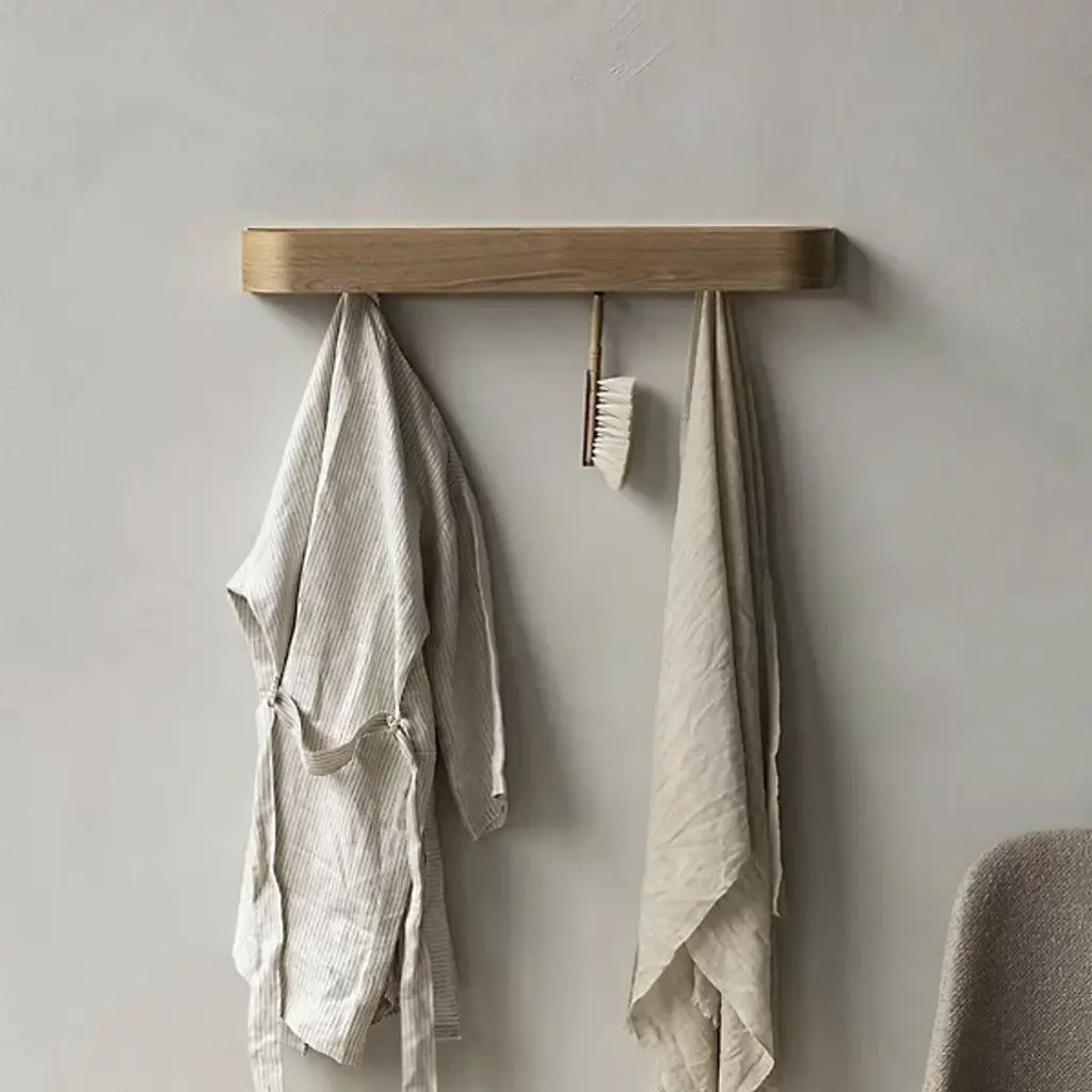 The Epoch Rack from Audo Copenhagen enhances interiors with clever curves and subtle Scandinavian lines. A design from Nina Bruun, a Danish creative, it extends from a rectangular wall mount; it’s made from a mix of plywood and oak veneer, designed around concealing the hangar hooks and tags behind the smooth beauty of rounded wood. The woodgrain is on full display and warms the rack’s surroundings, offering storage in unmistakable style with an eye on 1950s design.