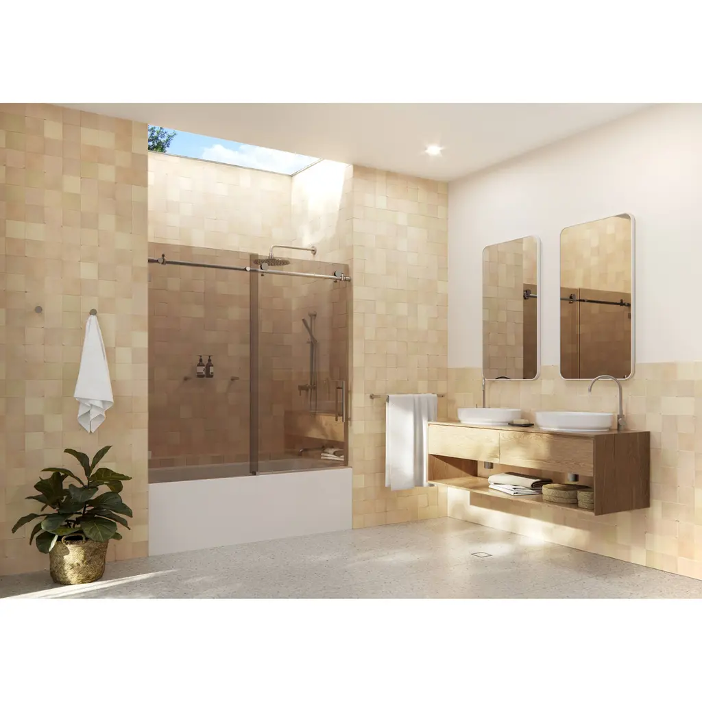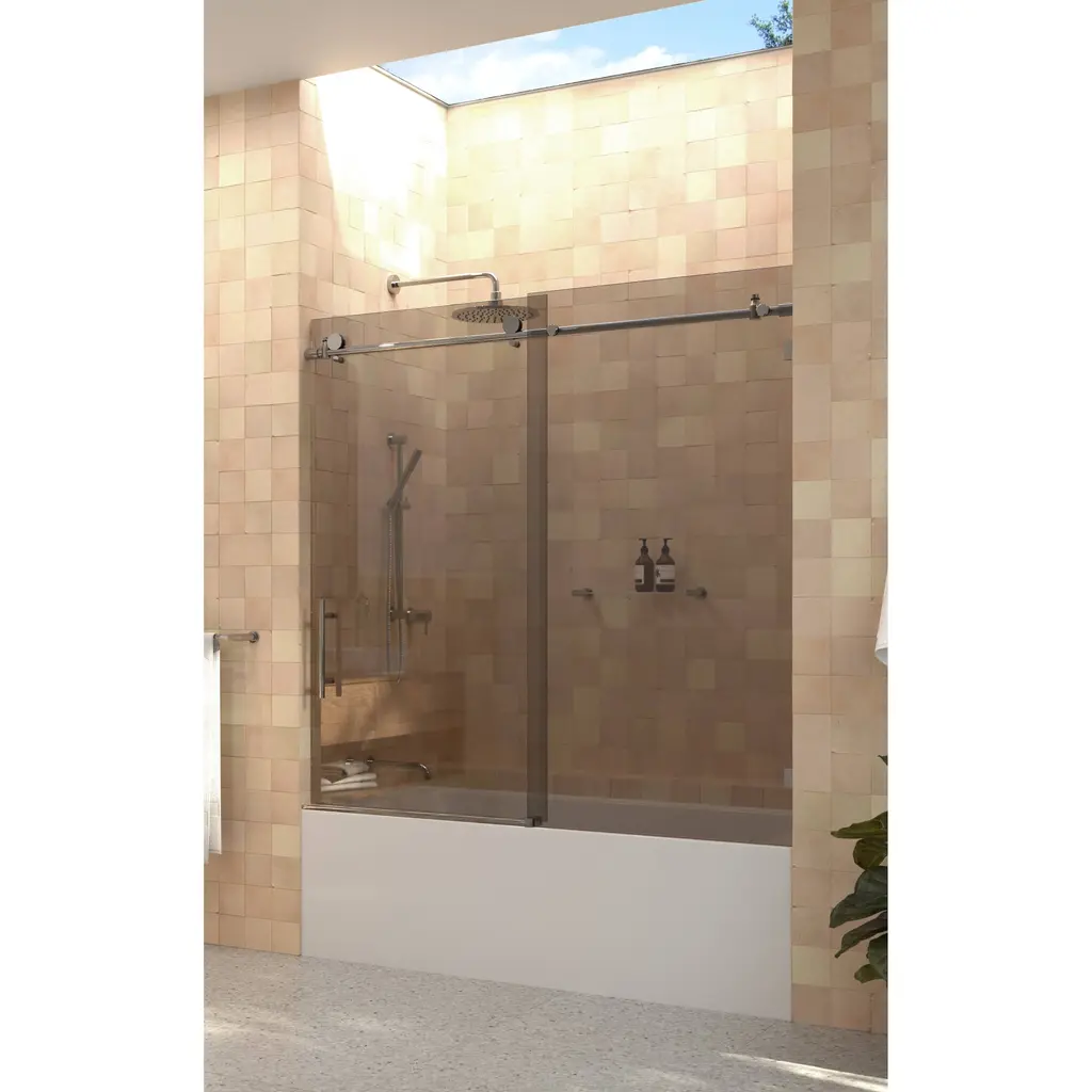 Equinox 60 In. X 60 In. Fully Frameless Glass Bath Slider With Bronze Tint - Chrome