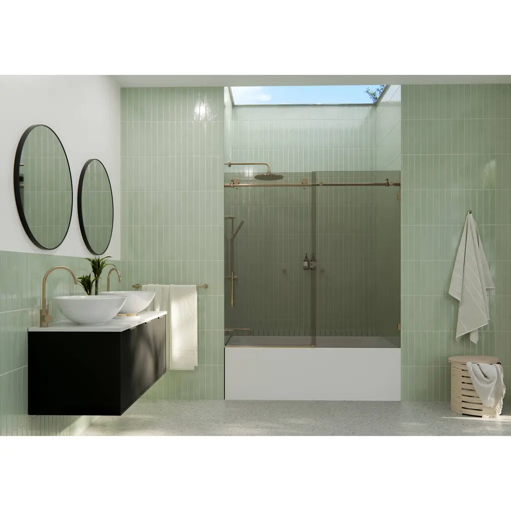 Equinox 60 In. X 60 In. Fully Frameless Glass Bath Slider With Gray Tint - Matte Black