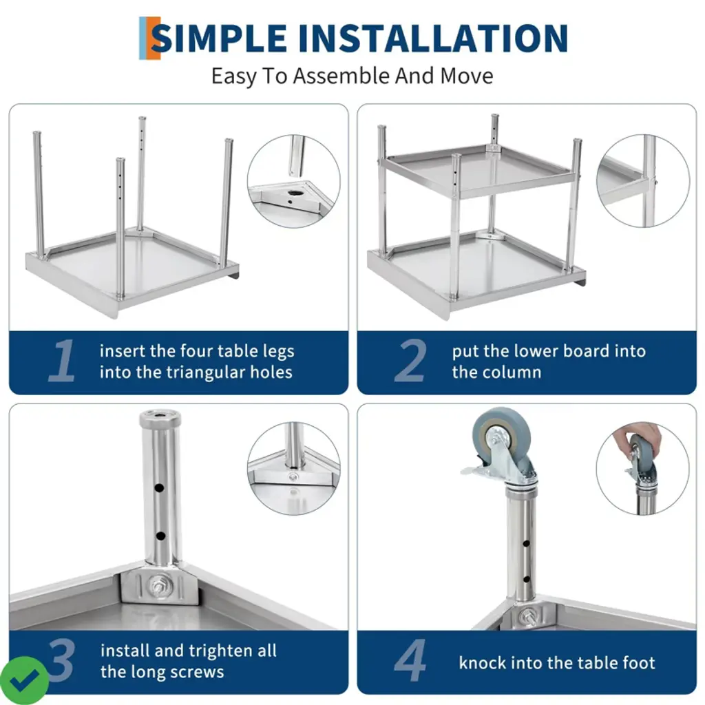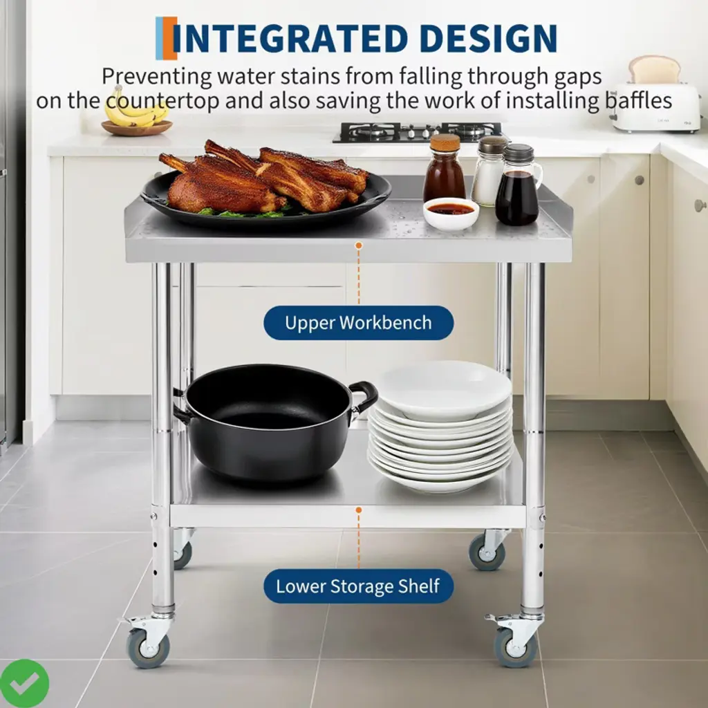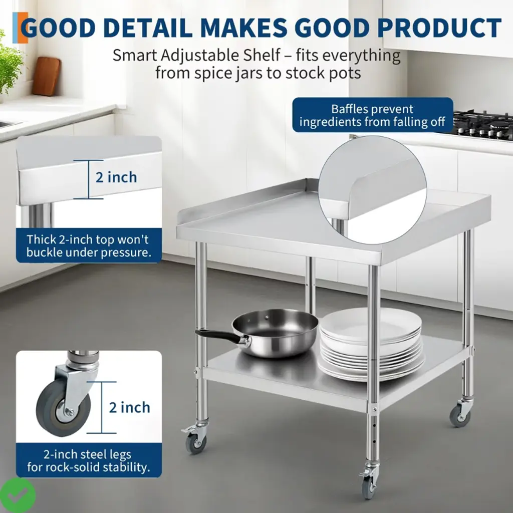 24x24x30 Inch/30x30x30 Inch/36 * 30 * 30Inch Stainless Steel Equipment Grill Stand Table NSF Certified with 5" Wheels, 400 Lbs Capacity, 2" Edge Baffle, for Hotel, Home, Commercial Restaurant Kitchen.