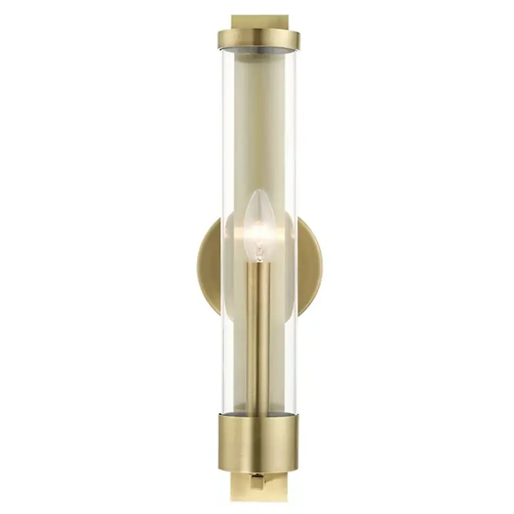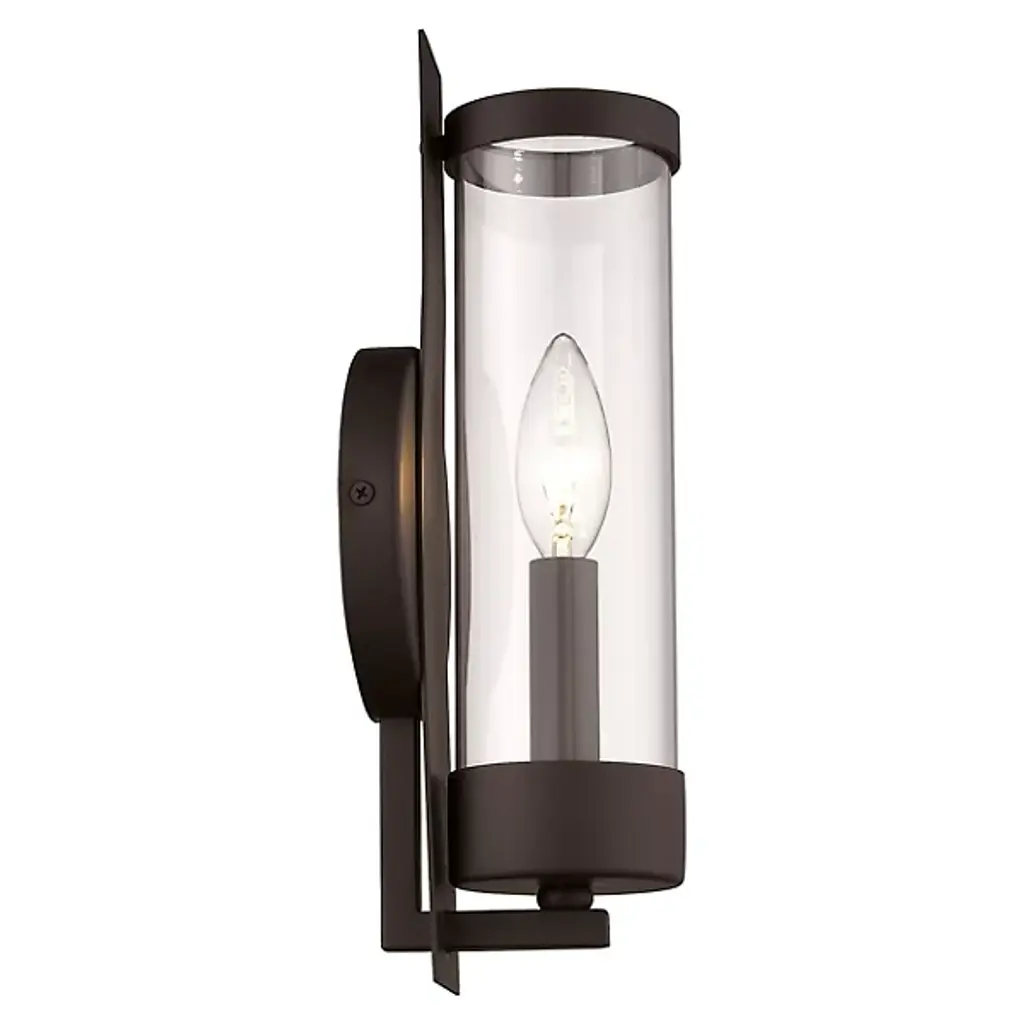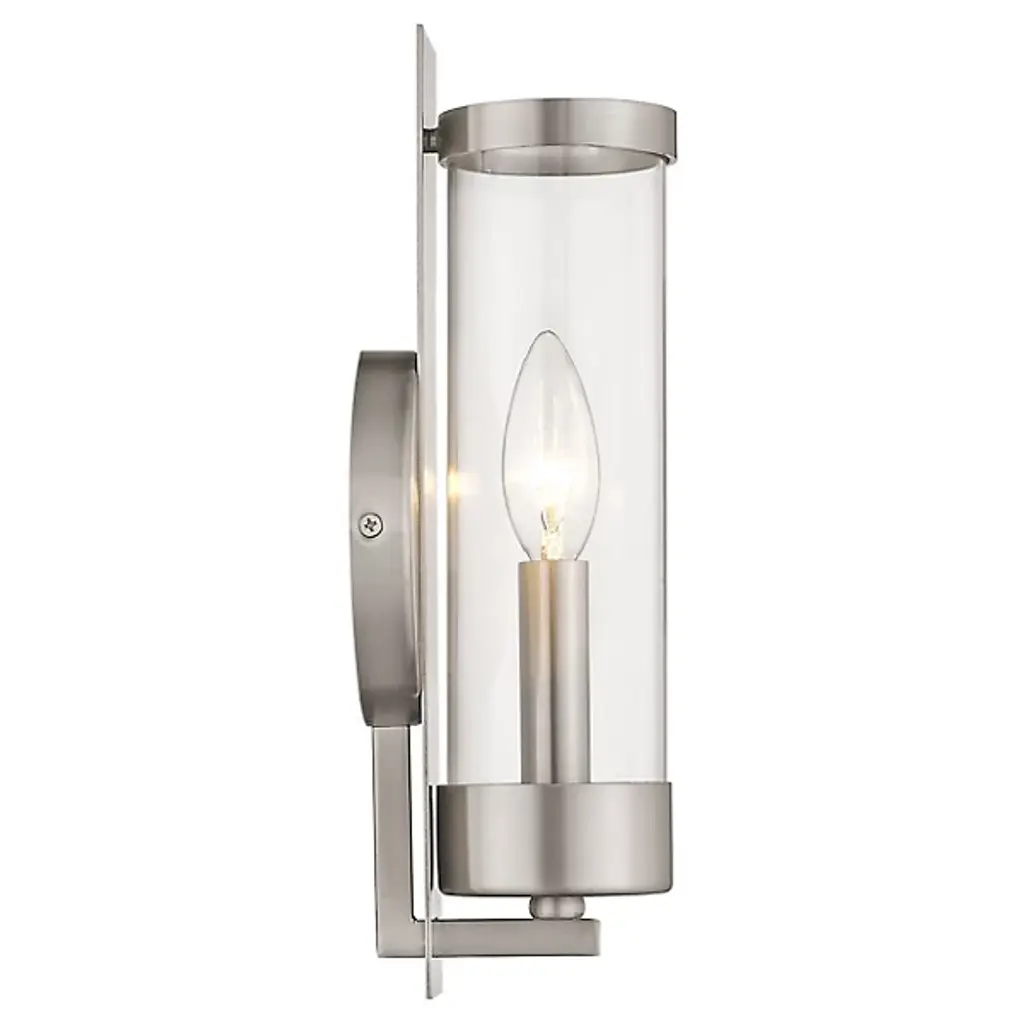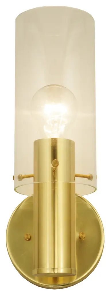 Heighten the intimate warmth of your home lighting with the Erica Wall Sconce from Alder & Ore. This piece slots in between entryways, columns, or framed pictures with a compact backplate and a slim figure. It reveals its modern aesthetic through the precision in its shapes. Made from steel, a curved cover presents an enhancing background for the lone bulb. A clear glass cylinder also accentuates the light source with a reflective, display-like quality. Standing over a minimalist lamp holder, the bulb turns on to generate a radiant and romantic ambient glow.