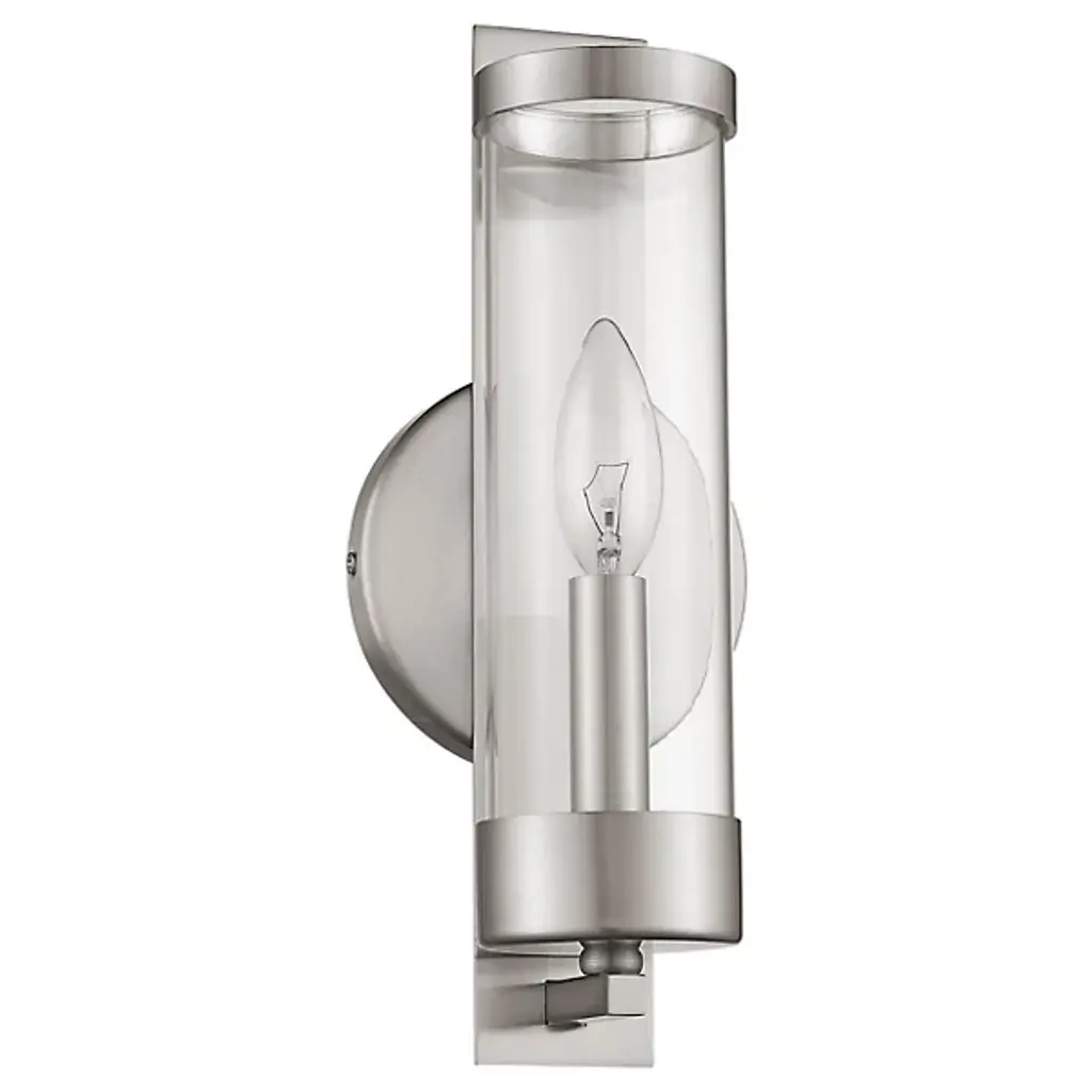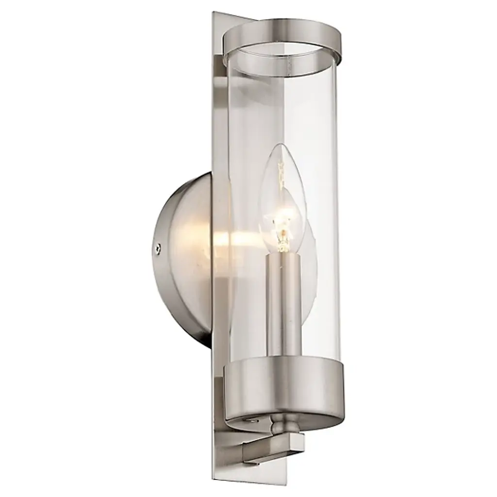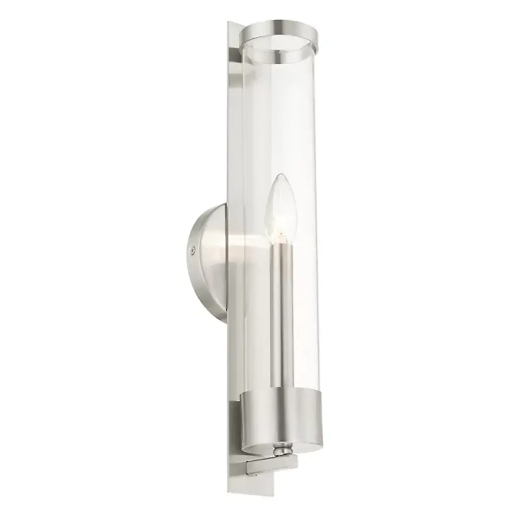 Heighten the intimate warmth of your home lighting with the Erica Wall Sconce from Alder & Ore. This piece slots in between entryways, columns, or framed pictures with a compact backplate and a slim figure. It reveals its modern aesthetic through the precision in its shapes. Made from steel, a curved cover presents an enhancing background for the lone bulb. A clear glass cylinder also accentuates the light source with a reflective, display-like quality. Standing over a minimalist lamp holder, the bulb turns on to generate a radiant and romantic ambient glow.