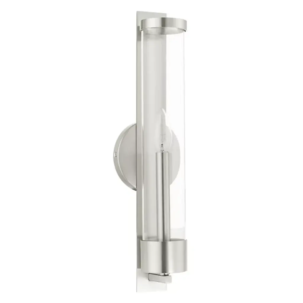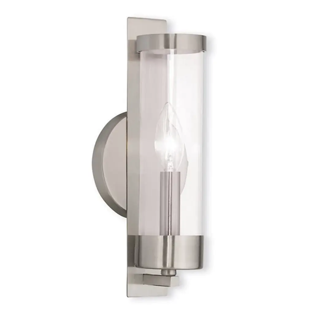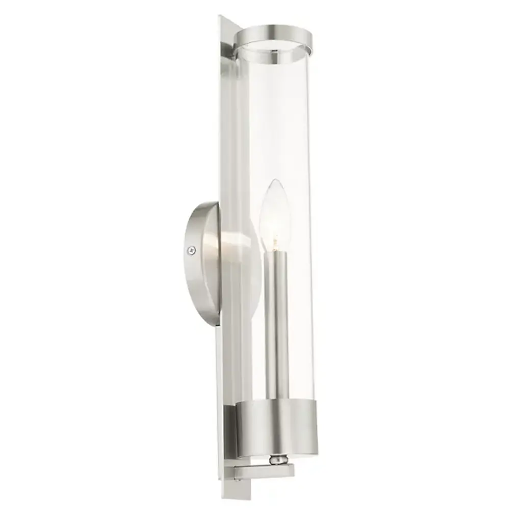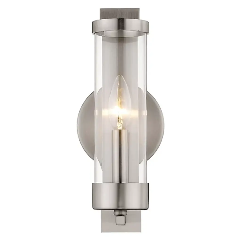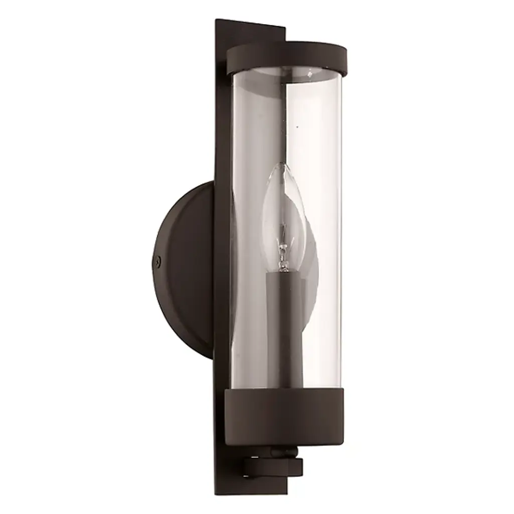 Heighten the intimate warmth of your home lighting with the Erica Wall Sconce from Alder & Ore. This piece slots in between entryways, columns, or framed pictures with a compact backplate and a slim figure. It reveals its modern aesthetic through the precision in its shapes. Made from steel, a curved cover presents an enhancing background for the lone bulb. A clear glass cylinder also accentuates the light source with a reflective, display-like quality. Standing over a minimalist lamp holder, the bulb turns on to generate a radiant and romantic ambient glow.