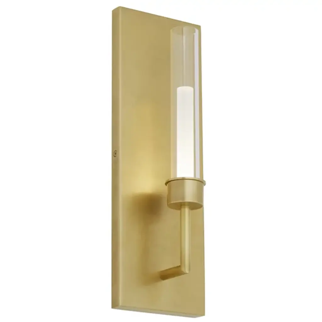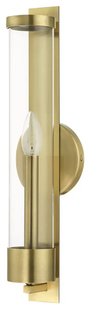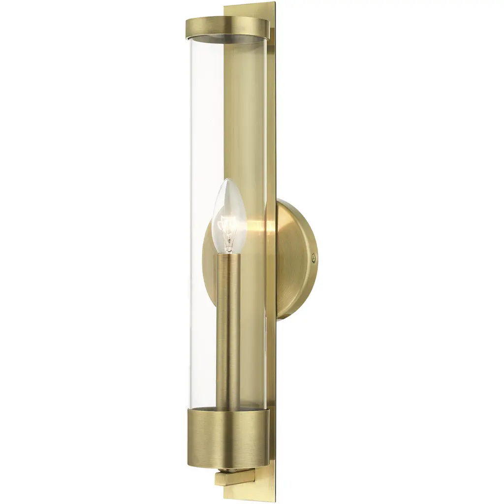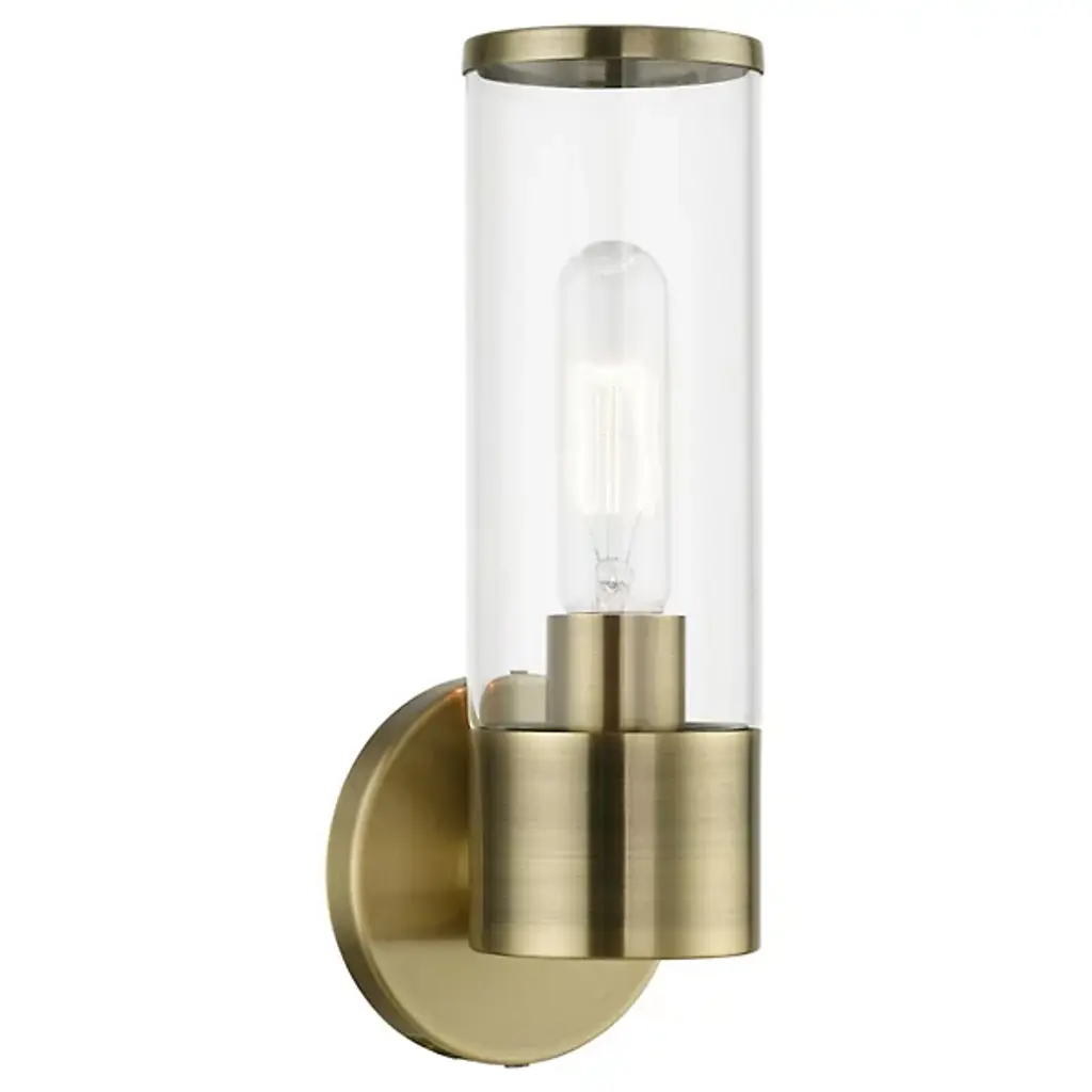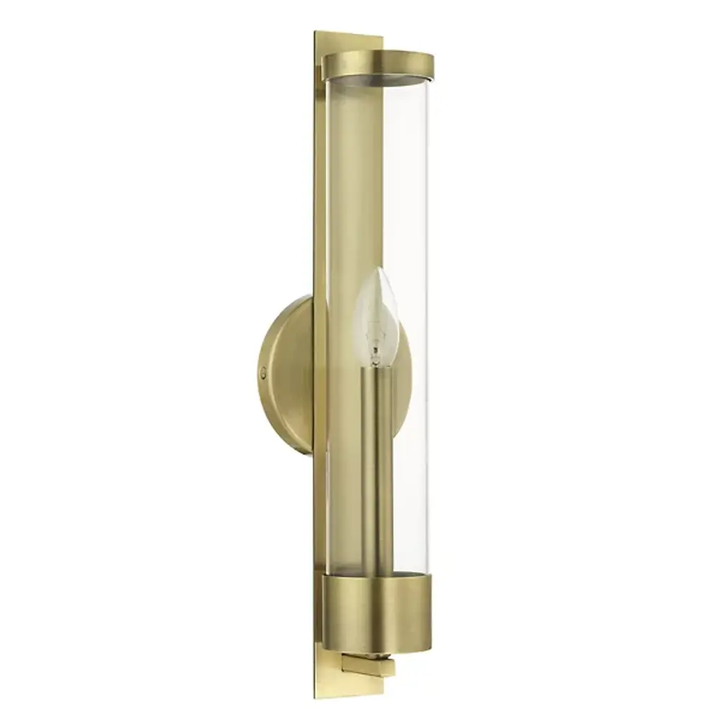 Heighten the intimate warmth of your home lighting with the Erica Wall Sconce from Alder & Ore. This piece slots in between entryways, columns, or framed pictures with a compact backplate and a slim figure. It reveals its modern aesthetic through the precision in its shapes. Made from steel, a curved cover presents an enhancing background for the lone bulb. A clear glass cylinder also accentuates the light source with a reflective, display-like quality. Standing over a minimalist lamp holder, the bulb turns on to generate a radiant and romantic ambient glow.