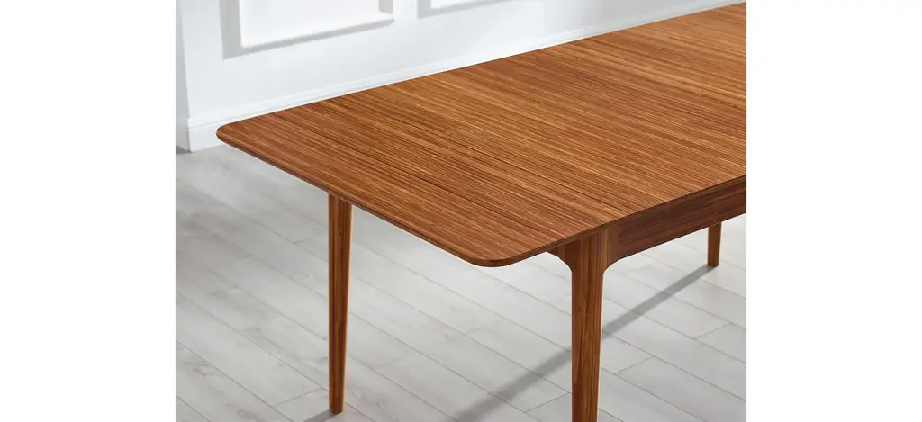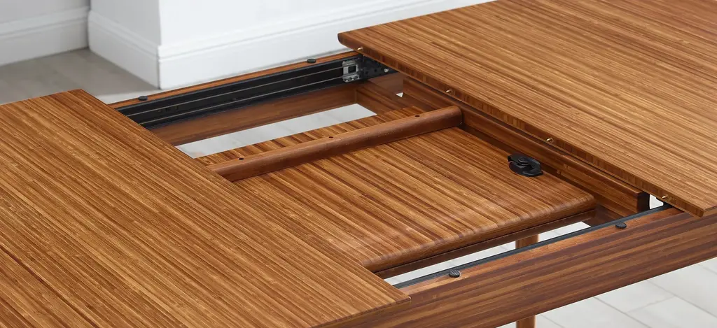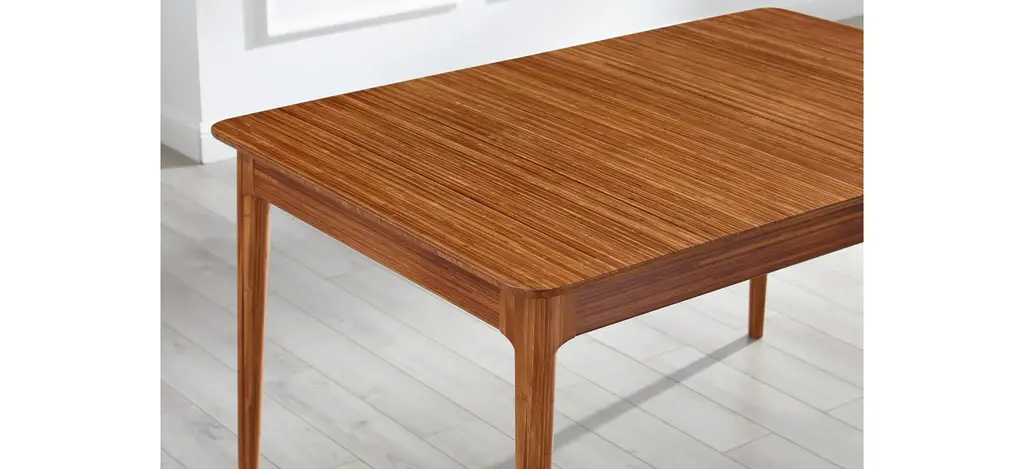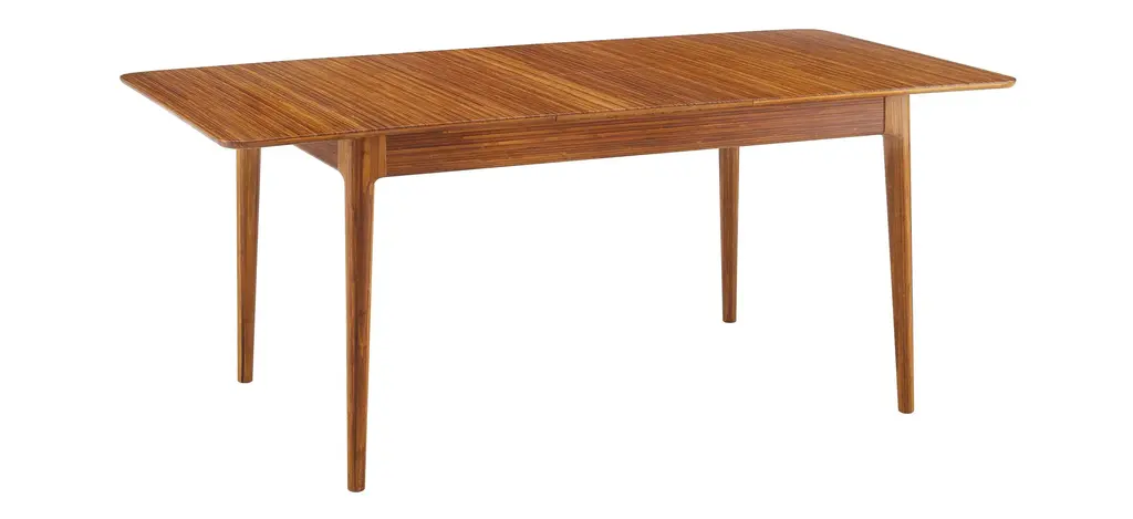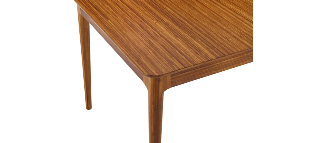 Stylish and functional, the first thing you notice about the Erikka Extension Dining Table are the vibrant colors found in the solid Amber bamboo. Suitable for small spaces, the simple and elegant table is easily expandable to make entertaining easy. City-scaled at 36 x 54", the Mija dining table extends to a full 72 inches with an 18" self-storing butterfly extension leaf. Expertly crafted solid bamboo, the Amber color is not a stain finish, simply an innovation created using earth friendly heat, steam, and pressure to transform the bamboo into Amber's deep color. Erikka makes it easy to live sustainably with style.