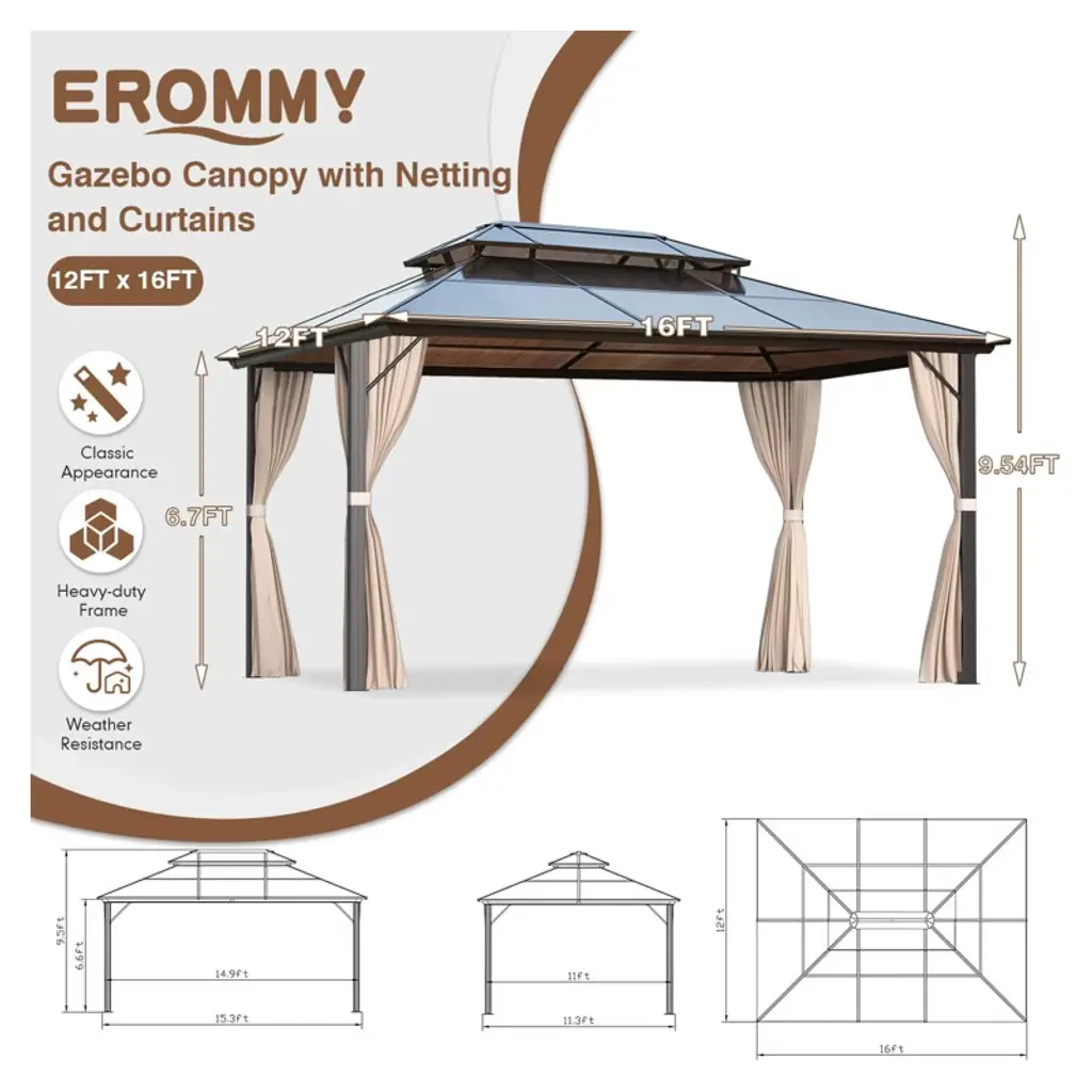 Erommy 12 Ft X 16 Ft Aluminum Patio Gazebo