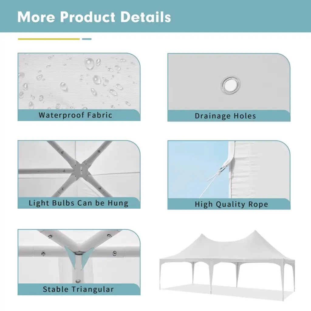 EROMMY 13'x 26'party tent is sturdy, made of thick steel pipes with a thick diameter, and PA coated waterproof polyester fabric, which is waterproof and UV resistant. Our tent has 12 side walls, all of which are connected by Velcro and elastic ropes for easy installation and removal. This party tent is a large-sized tent of 26 FT * 13 FT, which can accommodate at least 10-15 people under the tent. Not only can you enjoy a casual party with friends in the backyard, but you can also choose it as a tent for your birthday party. In addition, it is also suitable for meetings, barbecues and other activities, and it will be your best choice.