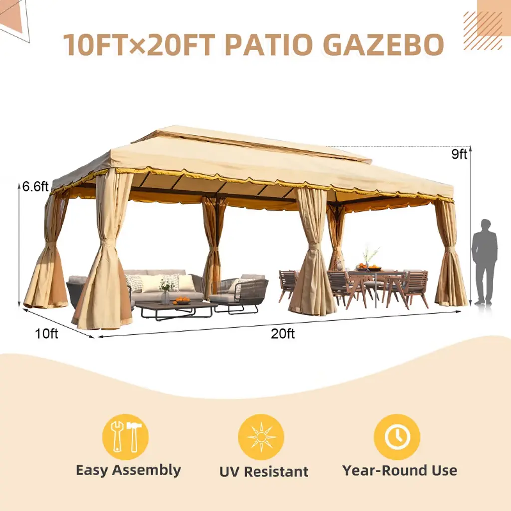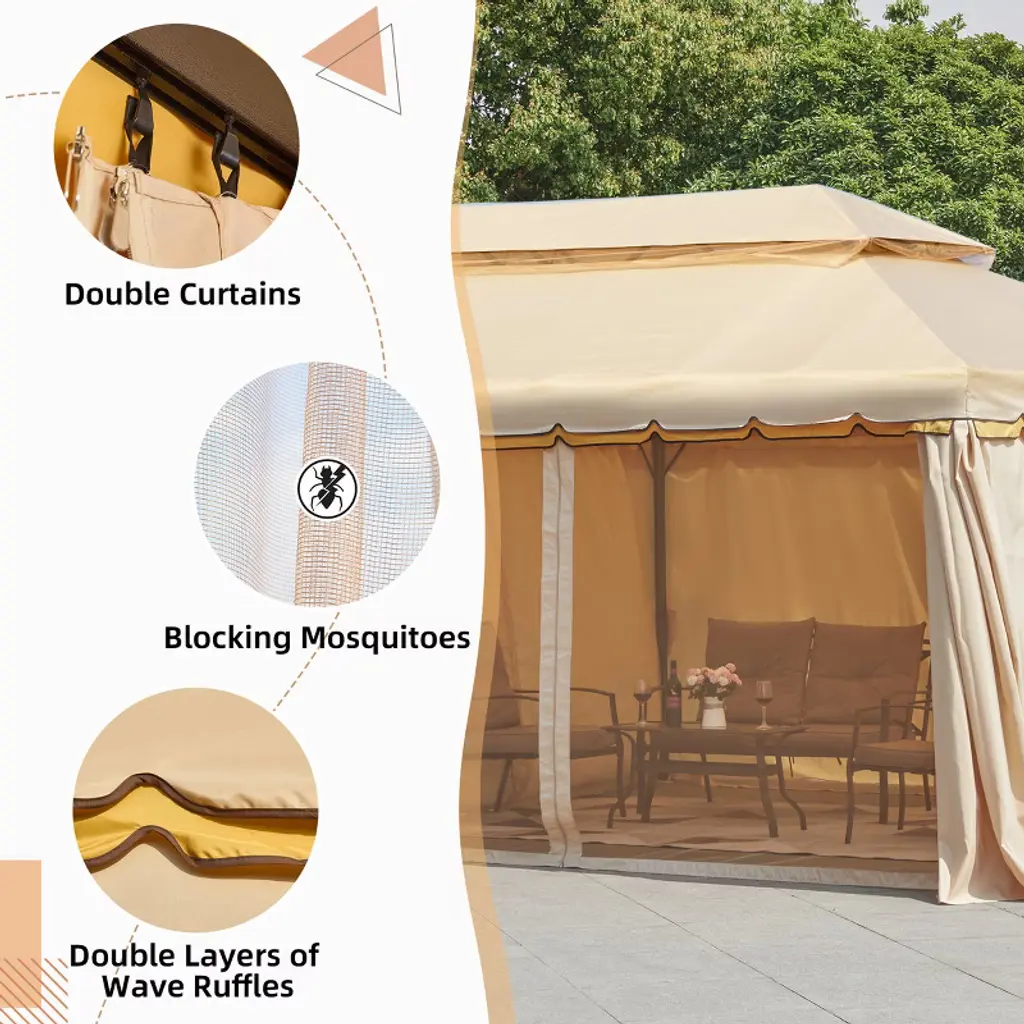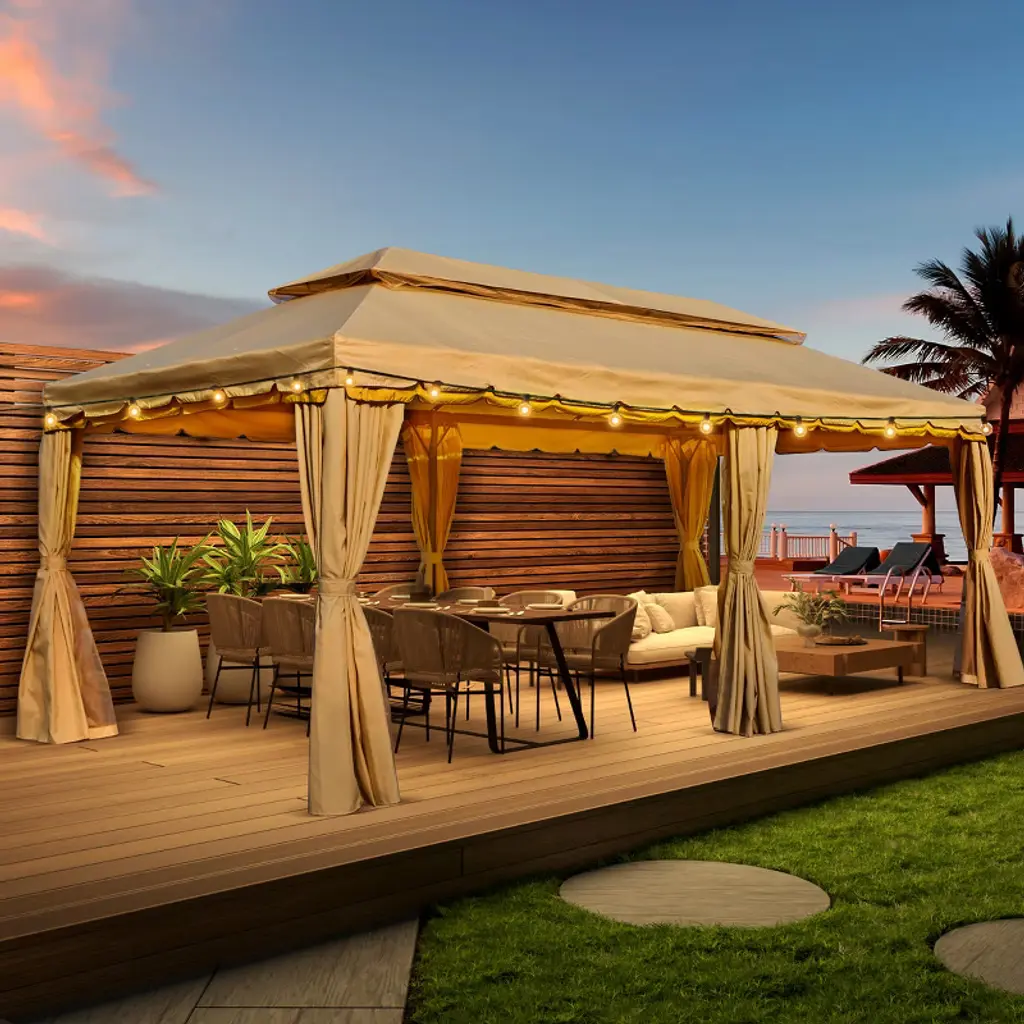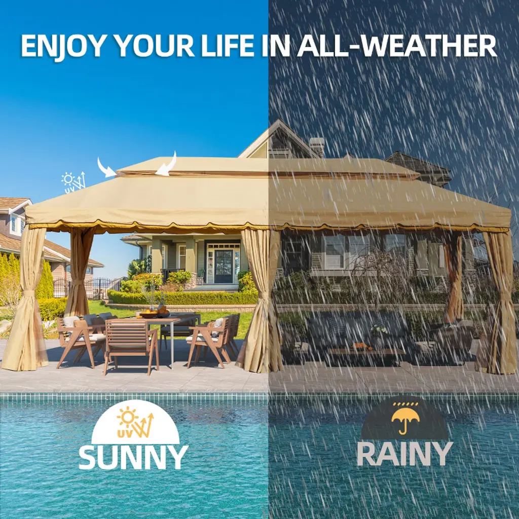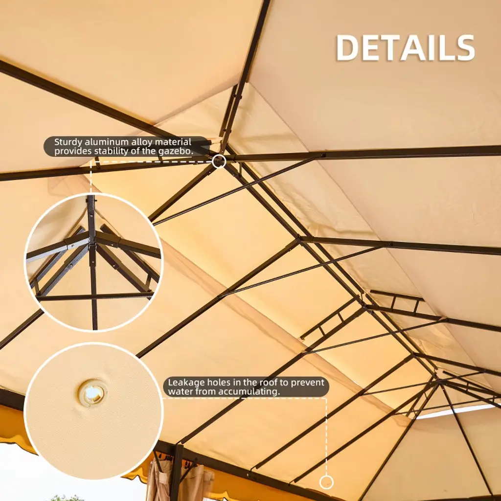 Our gazebo has a double roof design using a Breeze soft top cover for optimal breathability, ensuring a cozy atmosphere in any weather. The innovative design includes 10 built-in grommet holes for excellent drainage. With our well-designed gazebo protectors, you'll be able to enjoy the outdoors no matter what the weather throws at you.