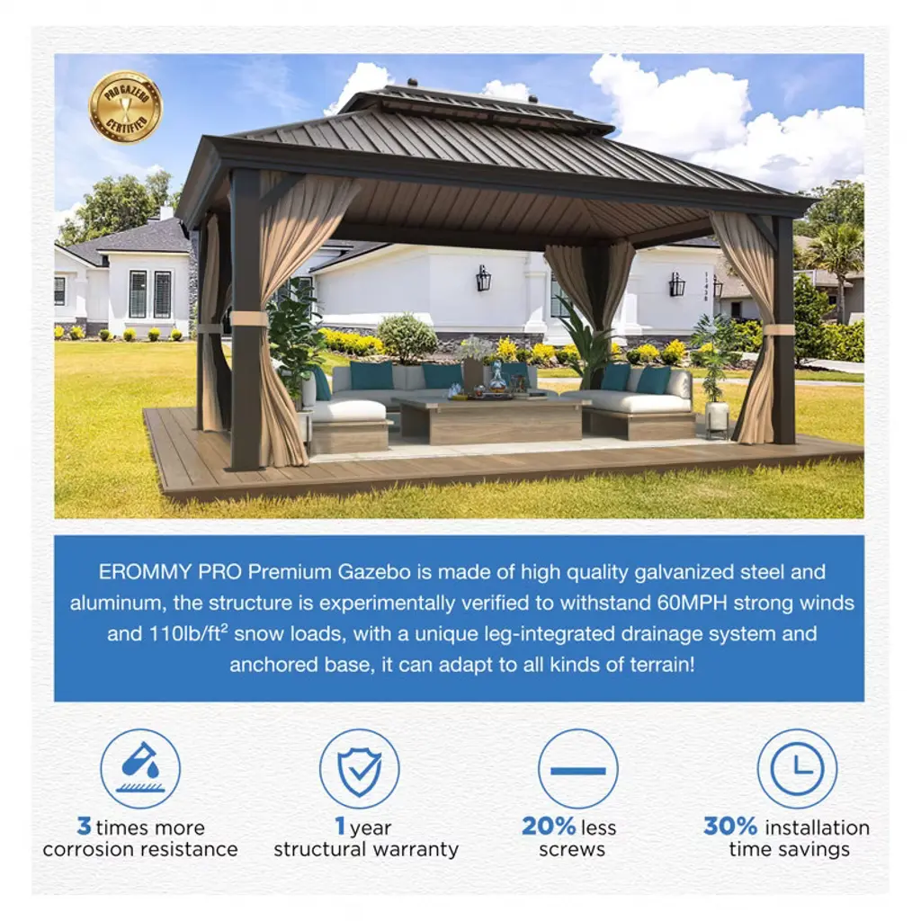 Erommy 20 Ft. W X 12 Ft. D Pro Series Hardtop Patio Gazebo, Outdoor Hardtop Gazebo With Double Roof