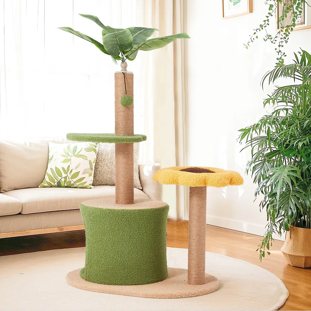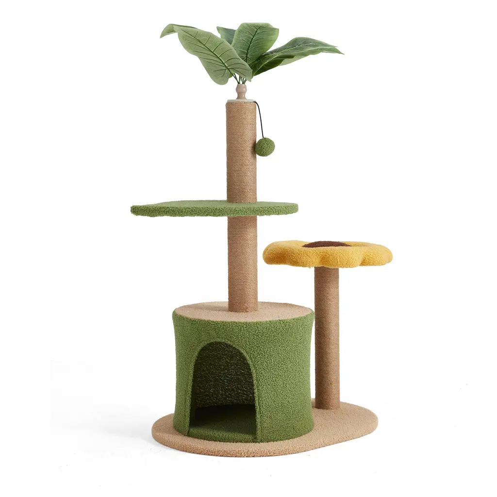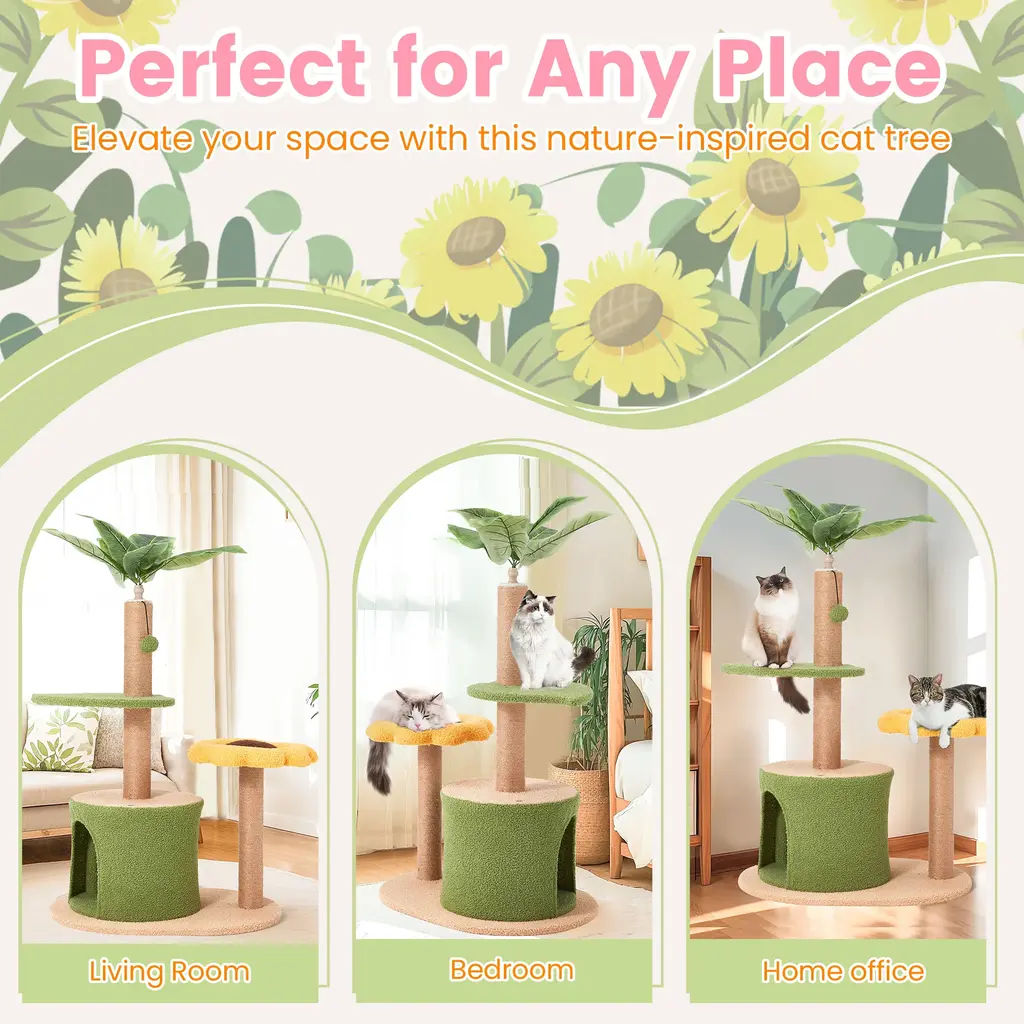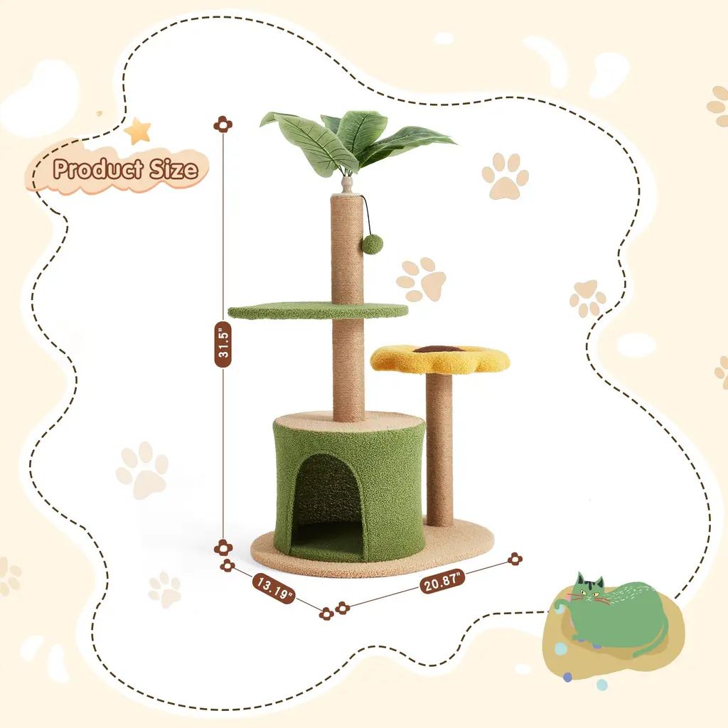 Erommy Cat Tree Tower,indoor Cat Tree With Sisal Scratching Posts, Cozy Condo, Sturdy Padded Perch-Colorful Cat Playhouse - 32" H - Sunflower