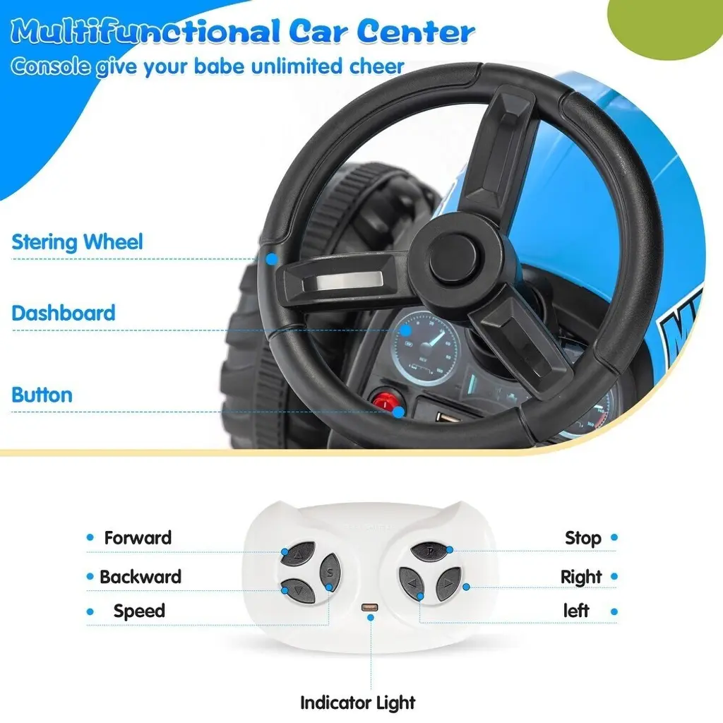 Erommy Electric Ride-On Excavator Toy With Remote Control, Horn, Lights, Music Player, And Safety Belt - N/a - 2-4 Years - B-Blue