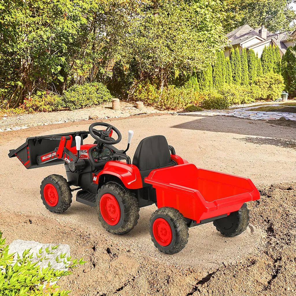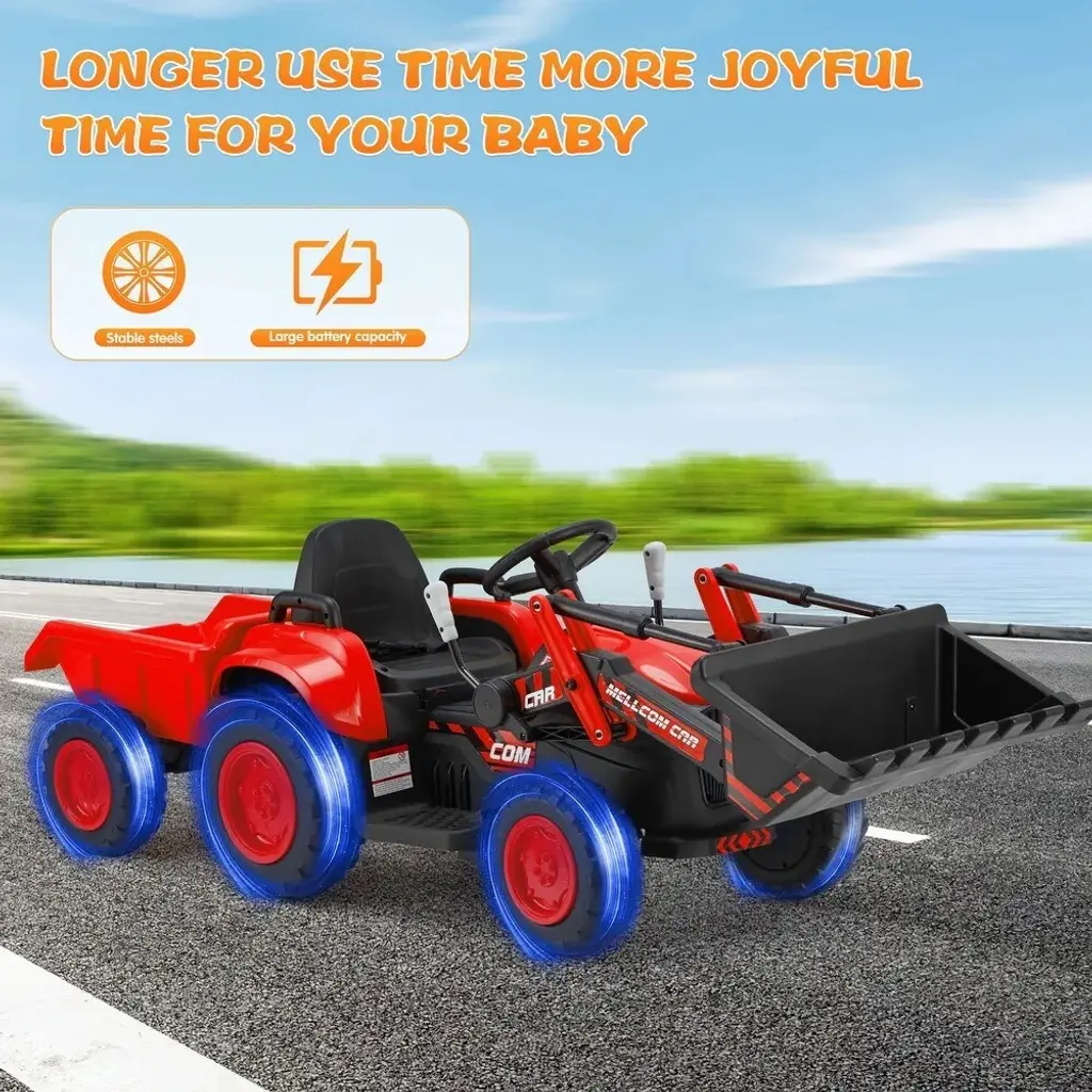 Erommy Electric Ride-On Excavator With Remote Control, Horn, Led Lights, Music Player, And Secure Safety Belt - 2-4 Years - B-Red
