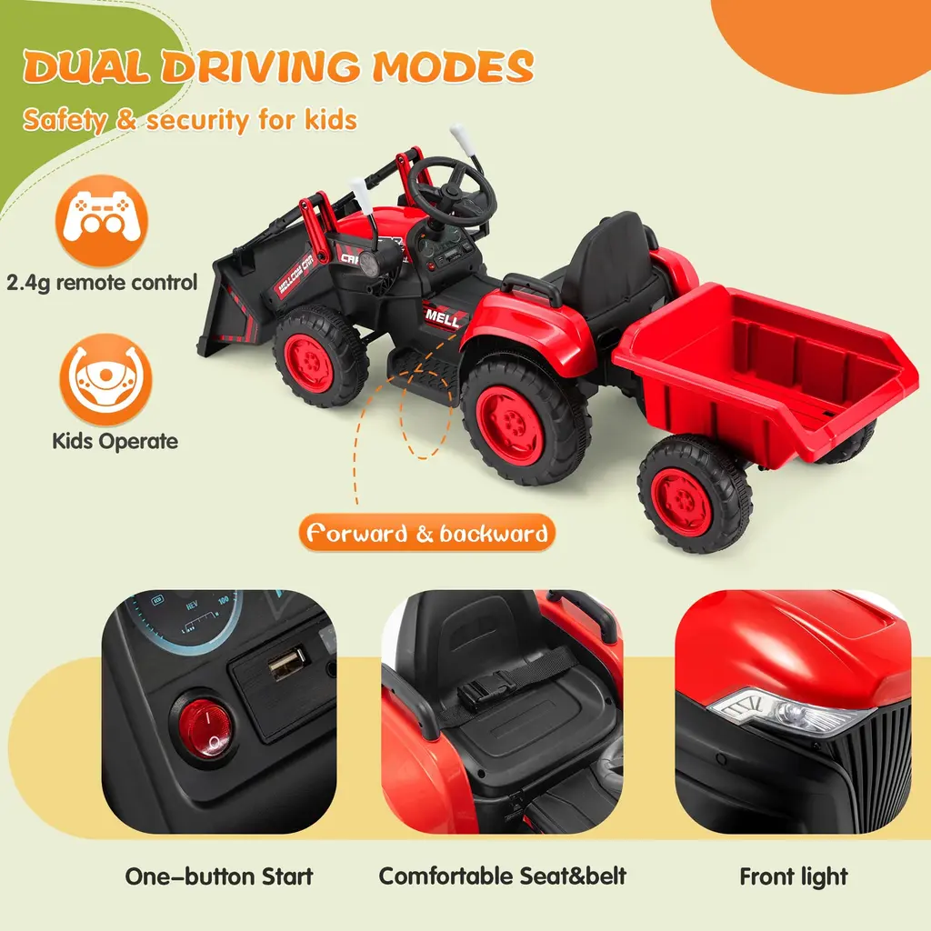 Erommy Ride On Car Toys With Remote Control, Digger, Horn, Lights, Music Player, Safety Belt, - 2-4 Years - B-Red
