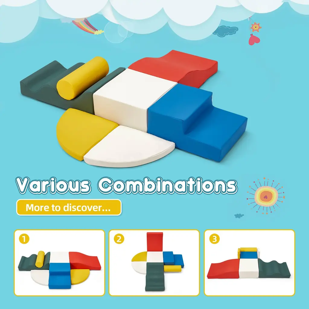 Safe & Fun Foam Climbing Blocks for Toddlers (Ages 1-3) Made from high-quality, eco-friendly soft foam and durable PU leather, these colorful climbing blocks are designed for both safety and fun. They are easy to clean, maintain, and perfect for indoor play, helping toddlers develop motor skills, coordination, and creativity through climbing, stacking, and rearranging.Key Features:Ideal for both playtime and home decoration, these climbing blocks offer endless fun while encouraging healthy development and quality parent-child bonding. A perfect holiday or birthday gift for toddlers!