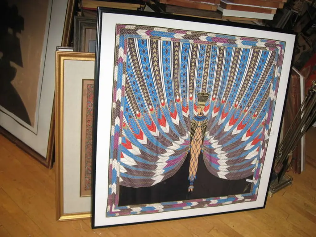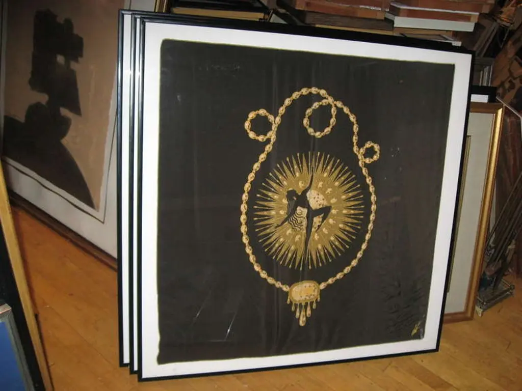 1982 Erte's 90th century birthday edition four framed silk scarves, signed in the weave.No's 1 and 2 have been sold. 3 and 4 are available.