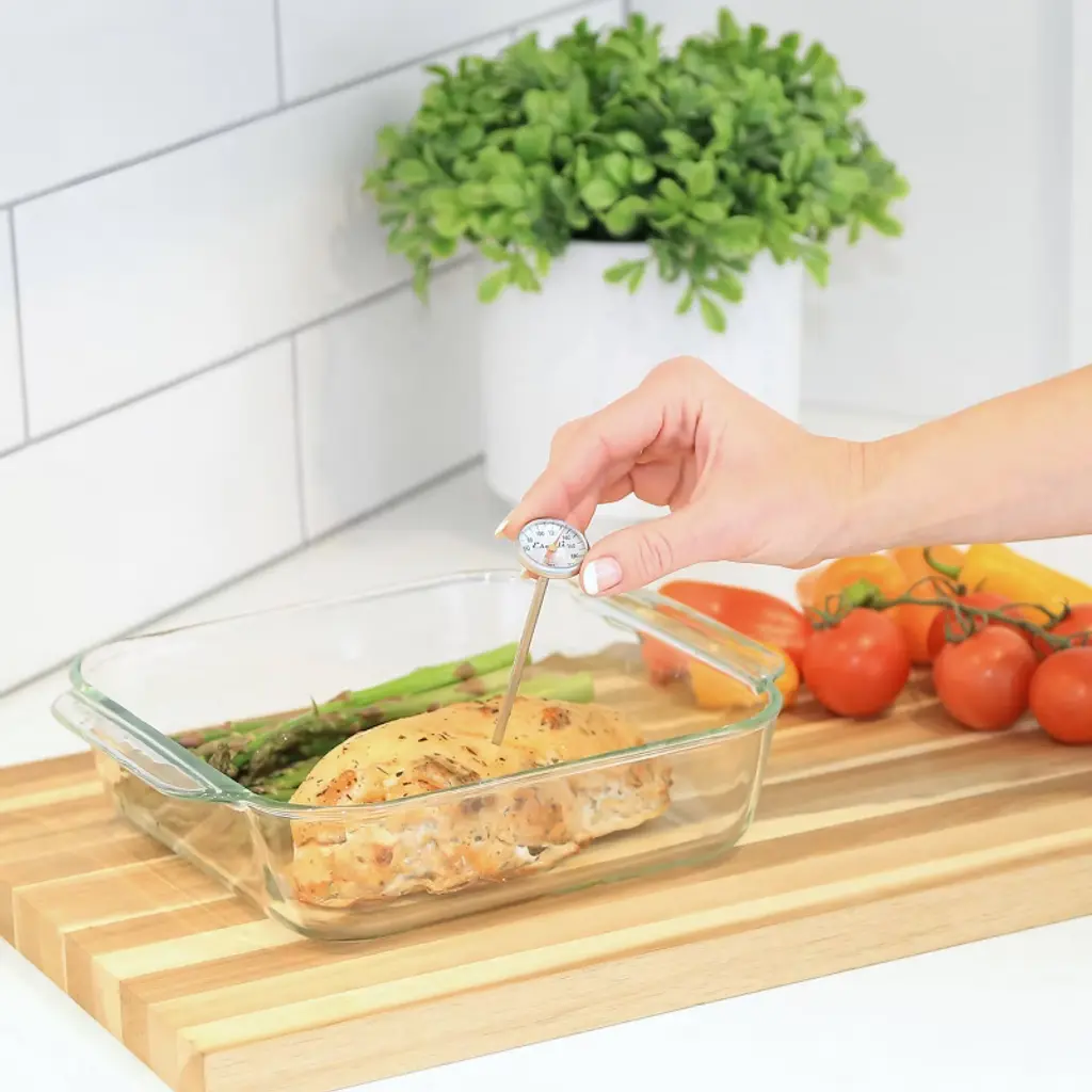 Life in the kitchen is easier when you use the right tool for the task. The Escali instant read thermometer ensures your food is cooked to a safe internal temperature and the desired doneness. This quick dial thermometer is great for checking food temperatures for your everyday prepping, cooking and baking. The antimicrobial protective sheath is imprinted with target cooking temperatures for beef, poultry, pork, lamb and veal.