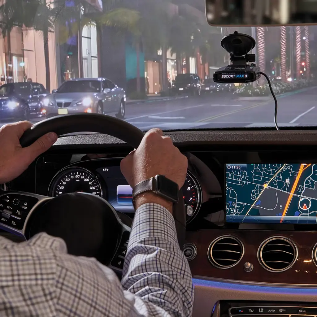 The ESCORT MAX 3 levels up your driving game as the next evolution in connected driver alert systems. Be prepared and more informed for anything on the road ahead with premium range and advanced filtering. Plus you can complement Waze or other navigation apps with ESCORT's exclusive driver community, giving you access to real-time shared alerts from other vehicles and drivers.