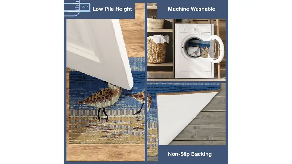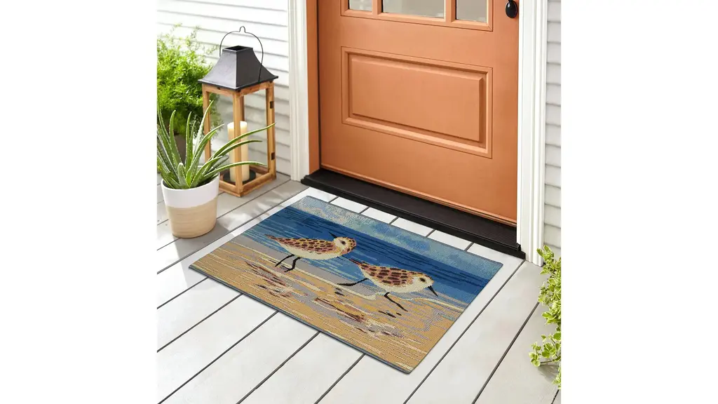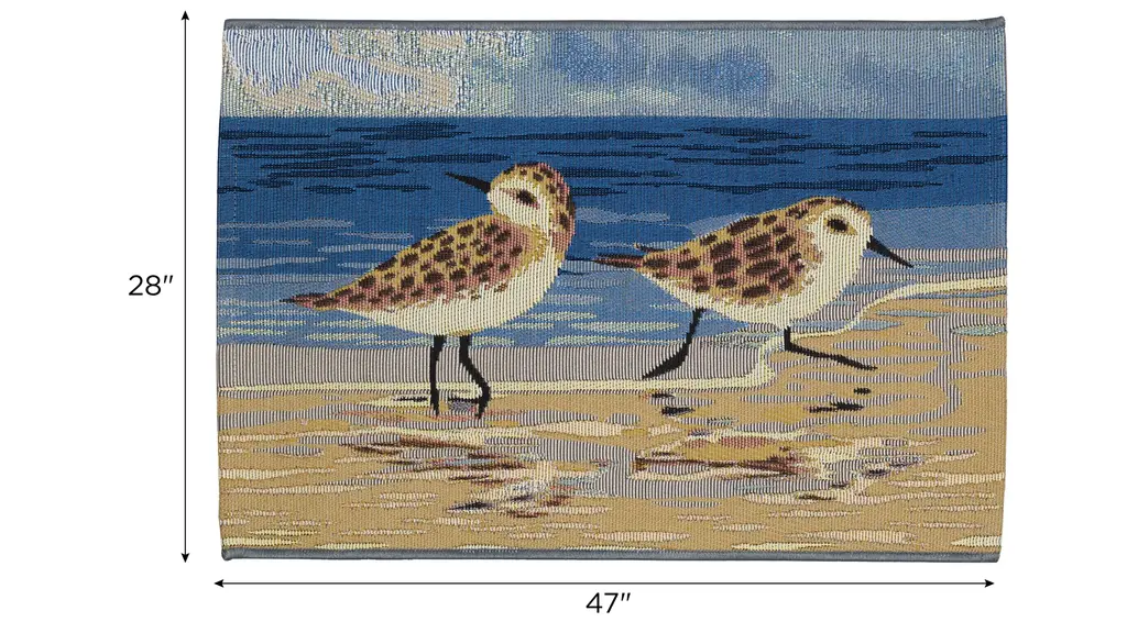 The Esencia Sandpipers Indoor/Outdoor Mat features cute little sandpipers strolling along the sandy beach with an ocean blue background. This whimsical beachy coastal design will effortlessly complement any space inside or outside your home.