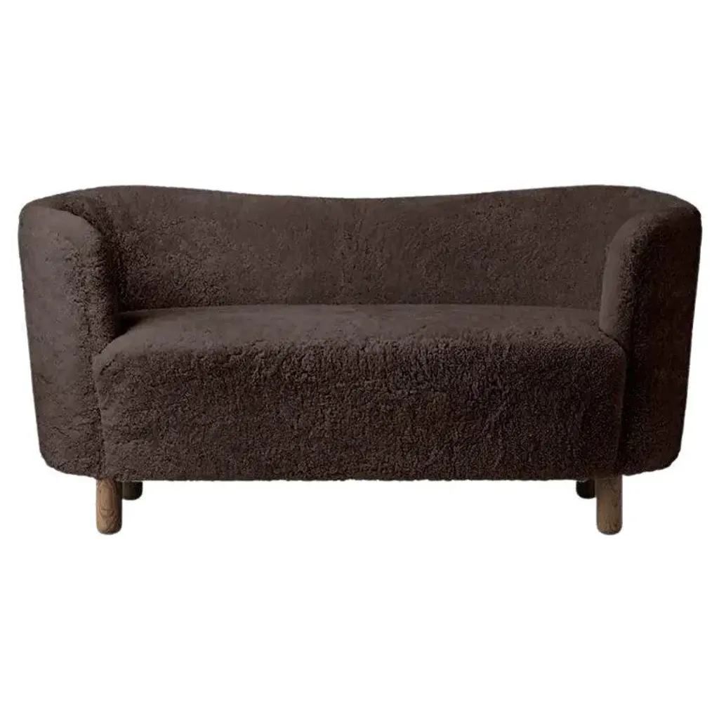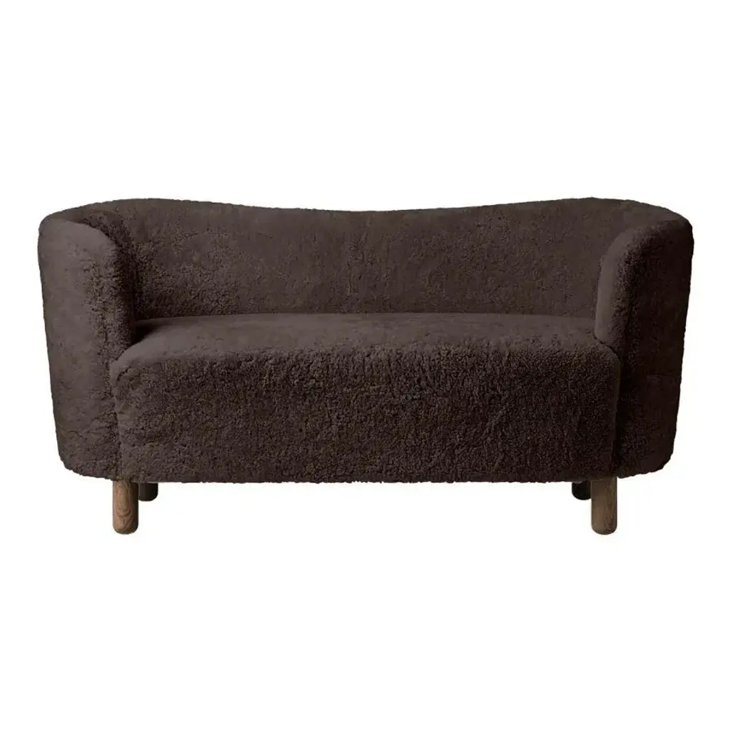 Espresso Sheepskin and smoked oak mingle sofa by Lassen Dimensions: W 154 x D 68 x H 74 cm Materials: Sheepskin, oak. The Mingle sofa was designed in 1935 by architect Flemming Lassen (1902-1984) and was presented at The Copenhagen Cabinetmakers’ Guild Competition in the same year. It was subsequently praised for its qualities as a small but elegant sofa in the professional journal “The Architect”. Flemming Lassen loved to travel, and he was often inspired by his journeys throughout Europe. He was very taken with both Italy and France, and had a burning desire to tour those countries on his motorcycle. Flemming Lassen wanted to create a sofa made for conversation with a comfort that invited people to stay seated and talk together for long periods of time. The armrests were designed to encircle the sitters, generating intimacy and transforming the sofa into a cosy place to relax. Flemming Lassen took inspiration from both French elegance and modern Italian style, and transferred the trends and his own ideas to a small, upholstered sofa called Mingle. By Lassen is a Danish design brand focused on iconic designs created by Mogens and Flemming Lassen, founded by Lassens’ relatives in 2008.