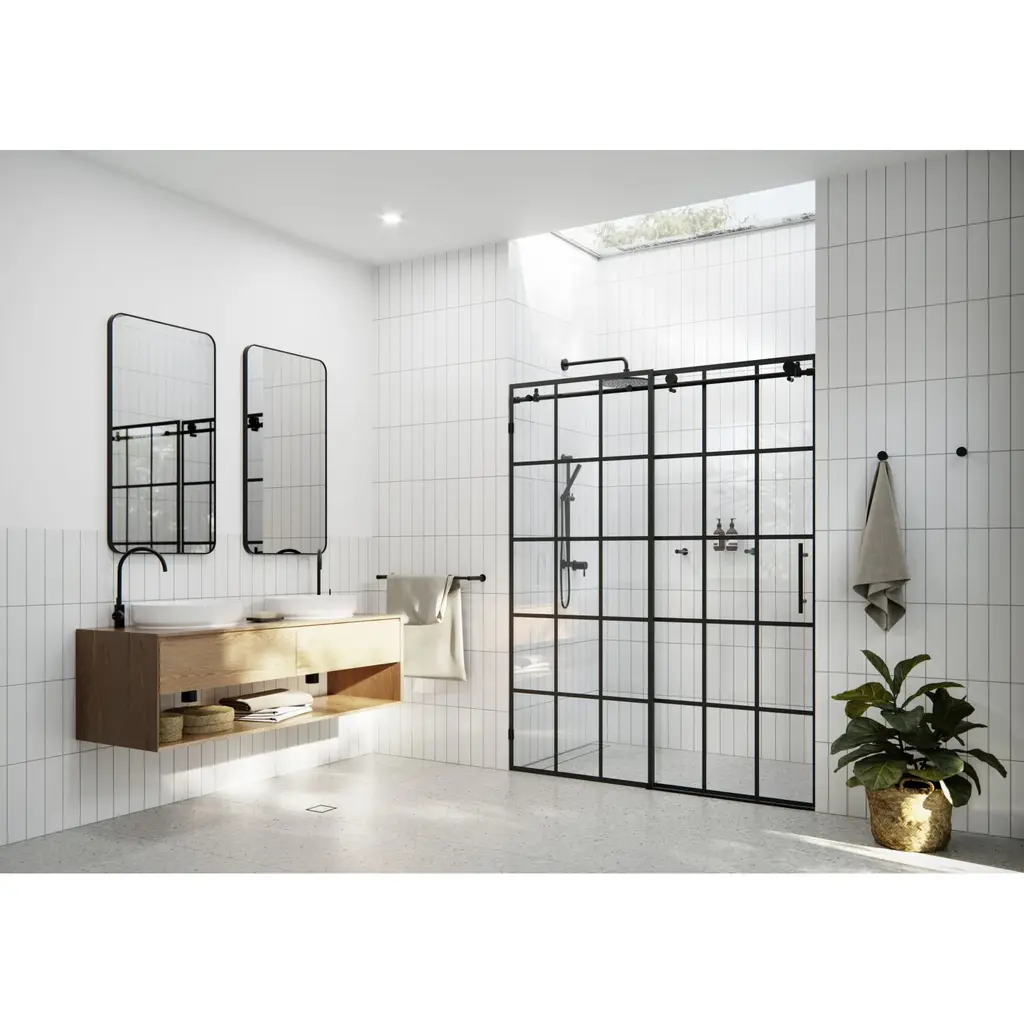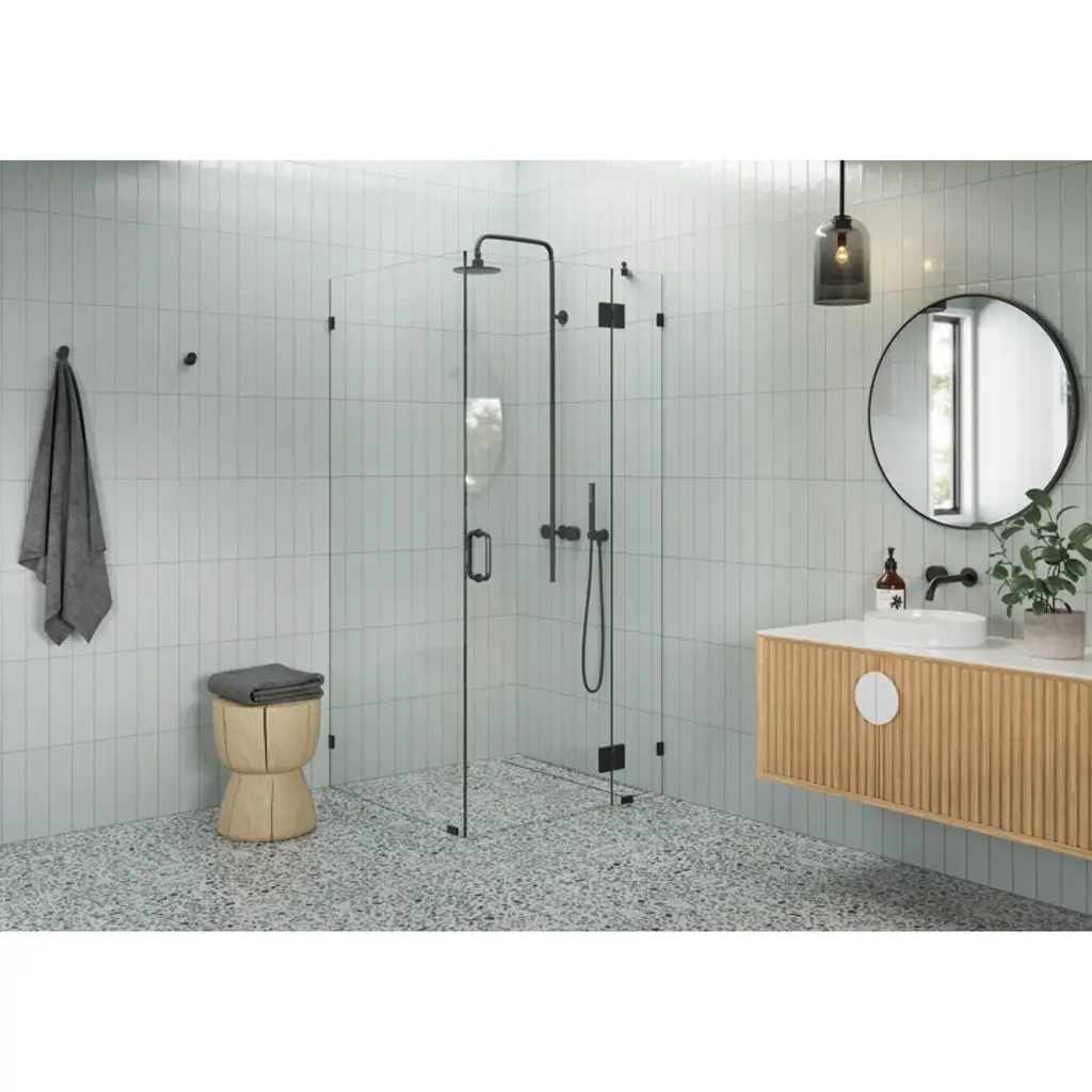 Make a striking statement in your bathroom with the eye-catching design of the Esprit fixed shower panel. High-quality glass enhances the light in your space, while the industrial aesthetic introduces a contemporary feel. Taller than most competitor shower enclosures, our 3/8” tempered glass panels come in a standard 78” height. Glass is treated with EnduroShield coating, which aids in repelling water and soap residue. In addition, our superior quality solid brass hardware is available in a variety of color finishes to suit any bathroom. With an extensive range of fixed shower panel sizes available, the Esprit by Glass Warehouse has a sleek, ceramic, matte black finish baked onto the glass making it a long-lasting, easy to clean design.