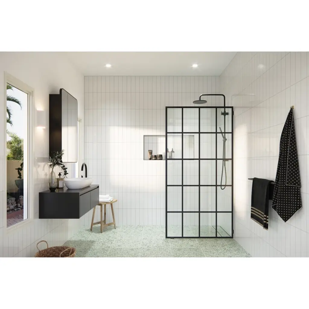 Make a striking statement in your bathroom with the eye-catching design of the Esprit fixed shower panel. High-quality glass enhances the light in your space, while the industrial aesthetic introduces a contemporary feel. Taller than most competitor shower enclosures, our 3/8” tempered glass panels come in a standard 78” height. Glass is treated with EnduroShield coating, which aids in repelling water and soap residue. In addition, our superior quality solid brass hardware is available in a variety of color finishes to suit any bathroom. With an extensive range of fixed shower panel sizes available, the Esprit by Glass Warehouse has a sleek, ceramic, matte black finish baked onto the glass making it a long-lasting, easy to clean design.