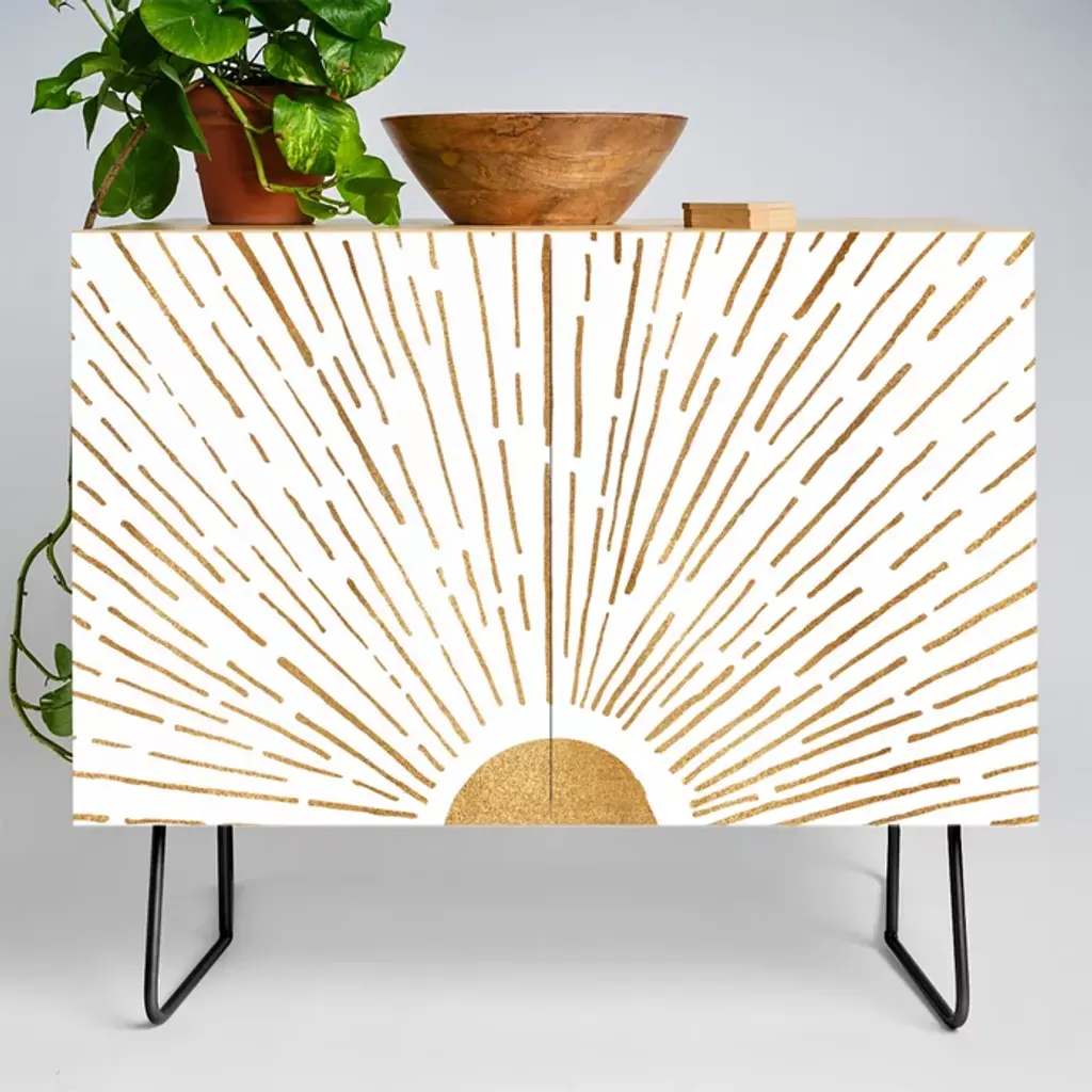 35.5" x 17.5" x 30" (H) including legsSteel legs available in gold or blackInterior shelf is adjustableWipe clean with damp clothAssembly requiredEvery order is made just for youTips for Assembling Your CredenzaHere’s what you’ll need beforehand (not included with your purchase): a Phillips head screwdriver and a partner. A ratchet and 7/16" socket is helpful but not required since we include a wrench.Read the instructions. We include a detailed, step-by-step guide in your box. Make sure to follow the instructions so your credenza looks perfect.SHIPPING: Items are made to order and typically ship within 3-4 business days. Click here for more information about delivery options.Furniture sales are final. Click here for more information on returns.
