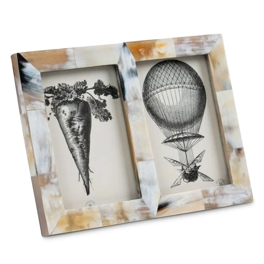 Made of African horn, Pigeon & Poodle's Essen collection now comes in a double frame, made of panels that range in rich chocolate and natural cream hues.