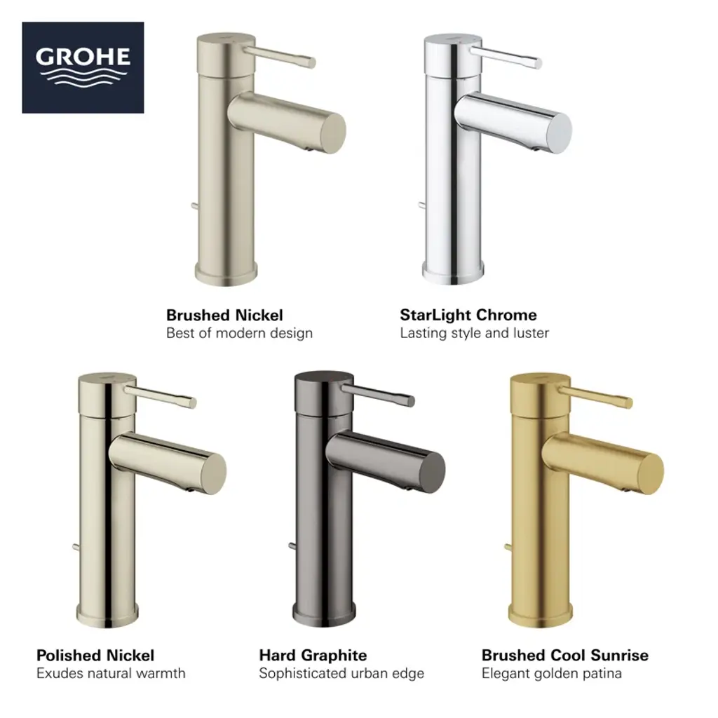 Sleek and sophisticated, the GROHE Essence Single-Handle Single-Hole Bathroom Faucet is a distinctive style with a top lever handle. This water-saving faucet reduces water usage while providing superior performance. Available in an array of exquisite, on-trend finishes. The Essence single-handle bathroom faucet embodies all the elements of precision craftsmanship and design excellence.