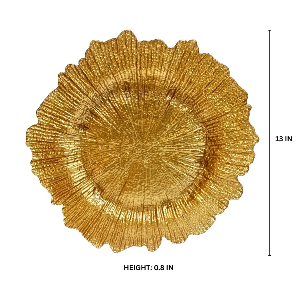 Bring modern elegance to your table with this set of 4 glass chargers. The silver tone and textured design deliver a sophisticated look that enhances a variety of dining styles. Stylish and functional, these chargers are a versatile addition to your dining collection, easily adaptable for both casual gatherings and formal occasions.