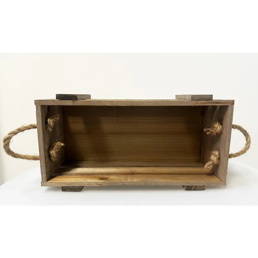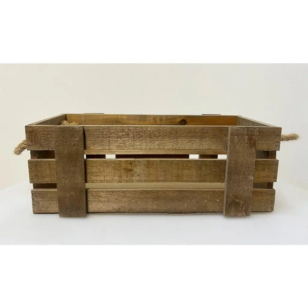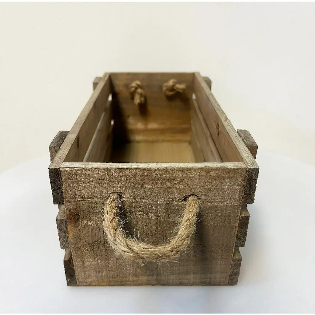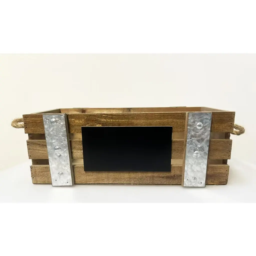This set of three wooden crates offers a stylish and practical way to organize your home while enhancing your decor with rustic charm. Each crate includes a chalkboard panel, perfect for labeling contents or adding a decorative touch. Designed with sturdy rope handles, they are easy to carry and move as needed. The Essential Decor 3-Piece Natural Wooden Crate Set combines functionality with rustic elegance, making it a versatile storage solution for any space. Set of Three: Includes three different sizes of crates to suit various storage needs. Large: 5.9" H x 17.71" L x 10.23" W Medium: 5.51" H x 15.74" L x 8.26" W Small: 5.11" H x 13.77" L x 6.29" W