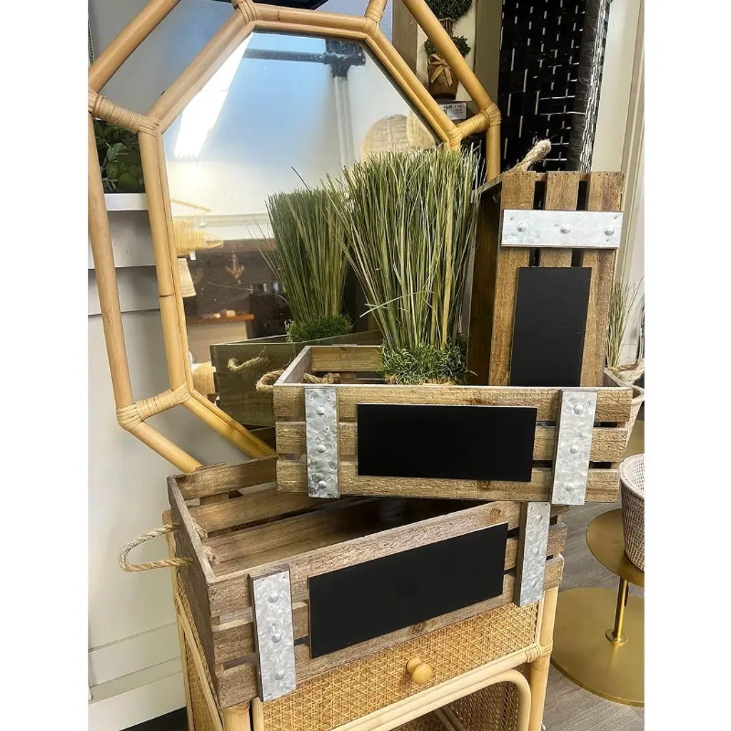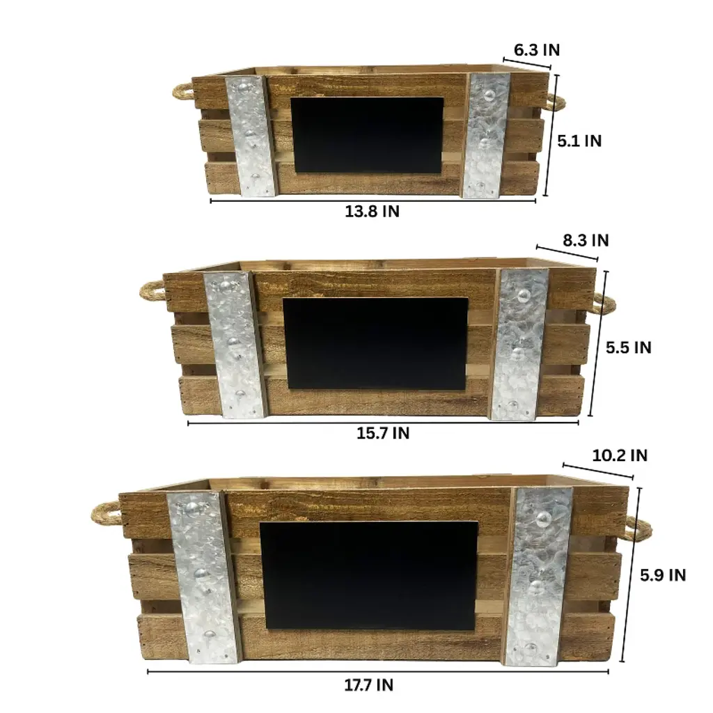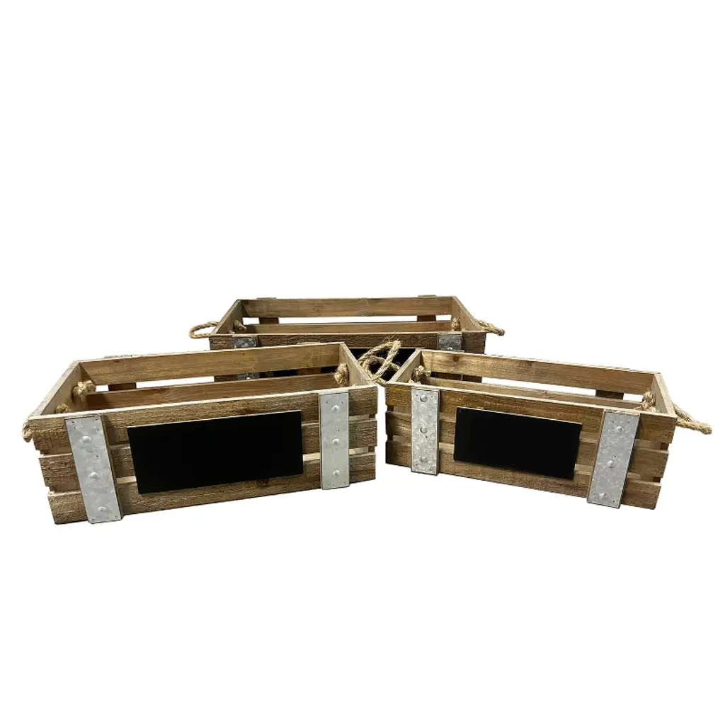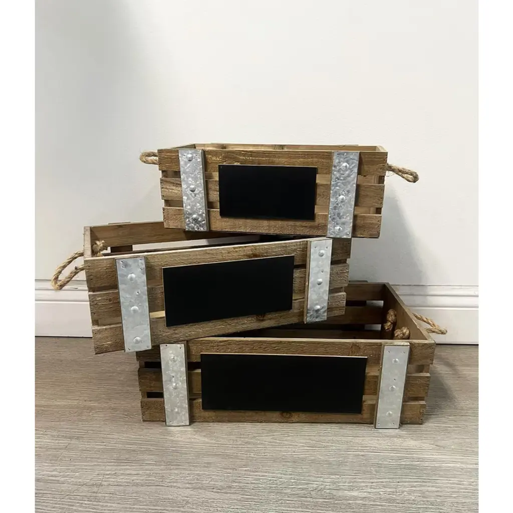 Essential Decor & Beyond 3-piece Set Natural Wooden Crate Storage With Chalk Board And Rope Handle