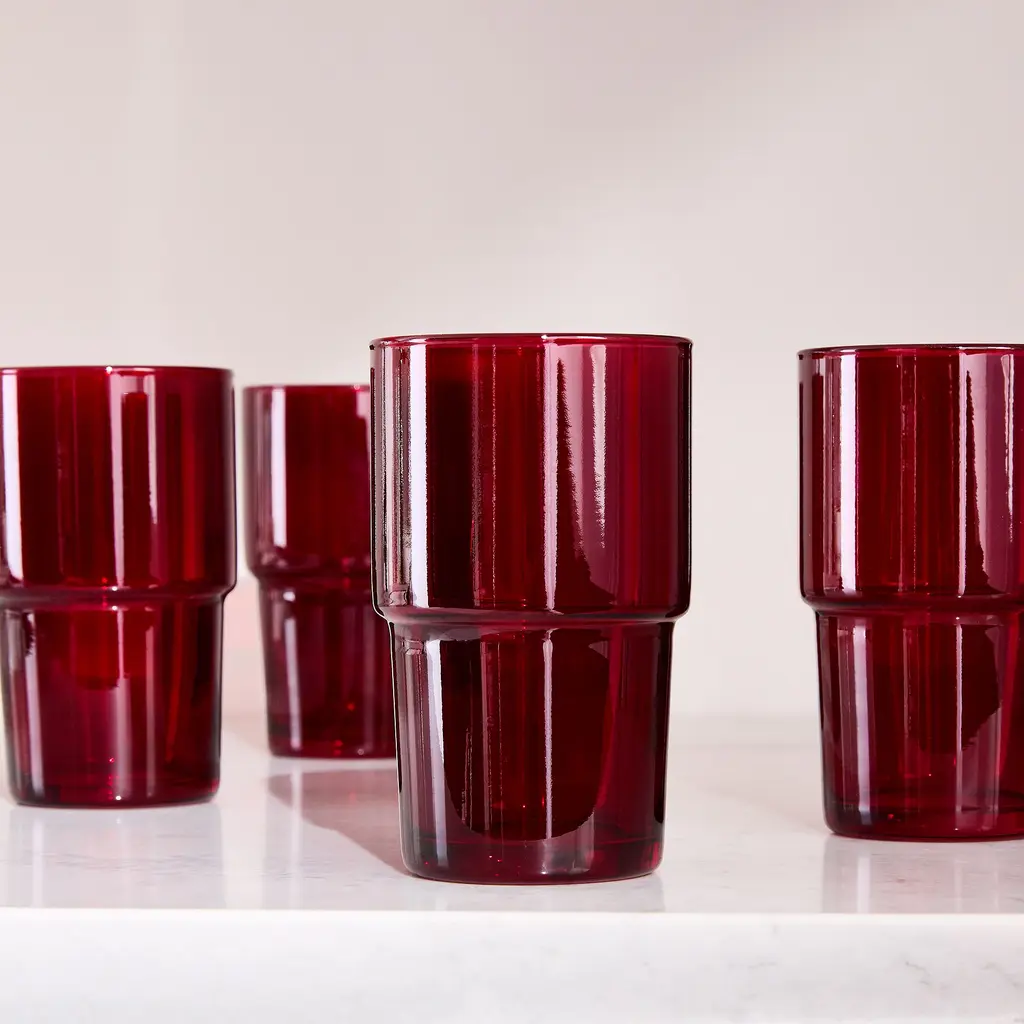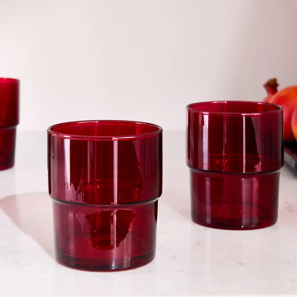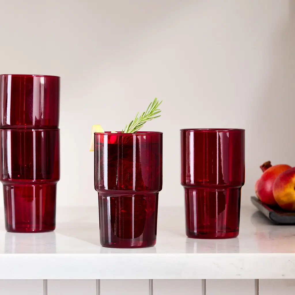 Serves your favorite drinks in understated style. The stackable design saves precious space. Dishwasher safe for easy maintenance.