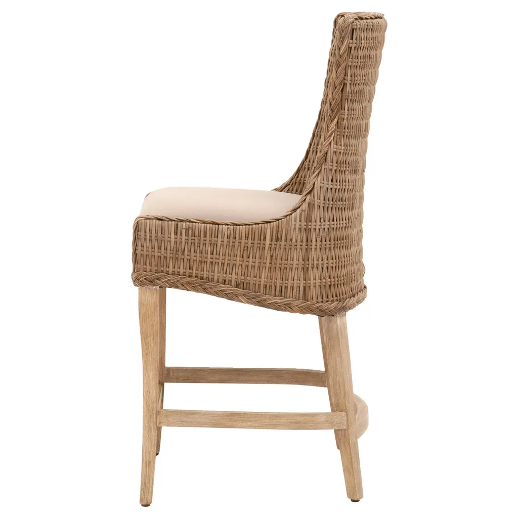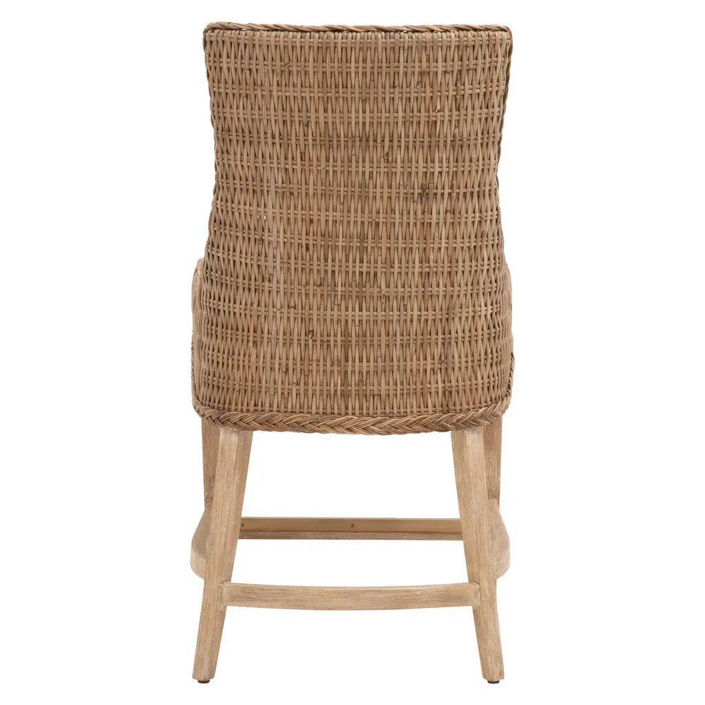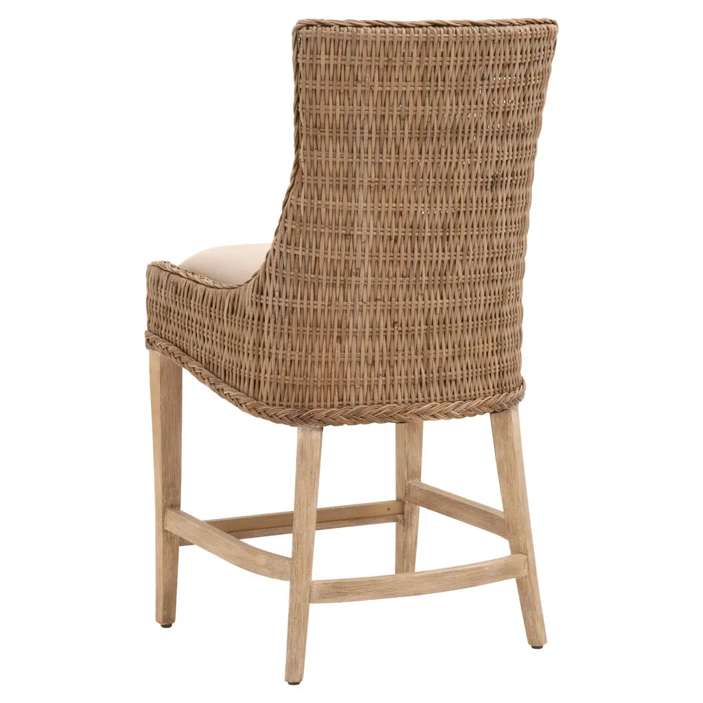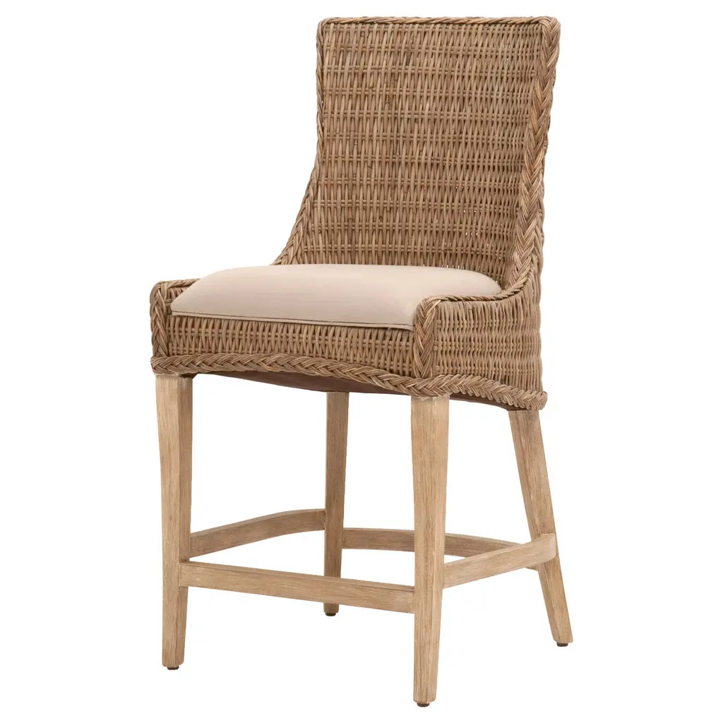 These woven counter stools will add a touch of coastal style to your kitchen, bar or dining room. Constructed with a wood frame and solid mahogany legs, these stools are not only sturdy, but durable. Gray Kubu is tightly woven to create a unique wicker design with braided detailing outlining the seat. The wood legs fea