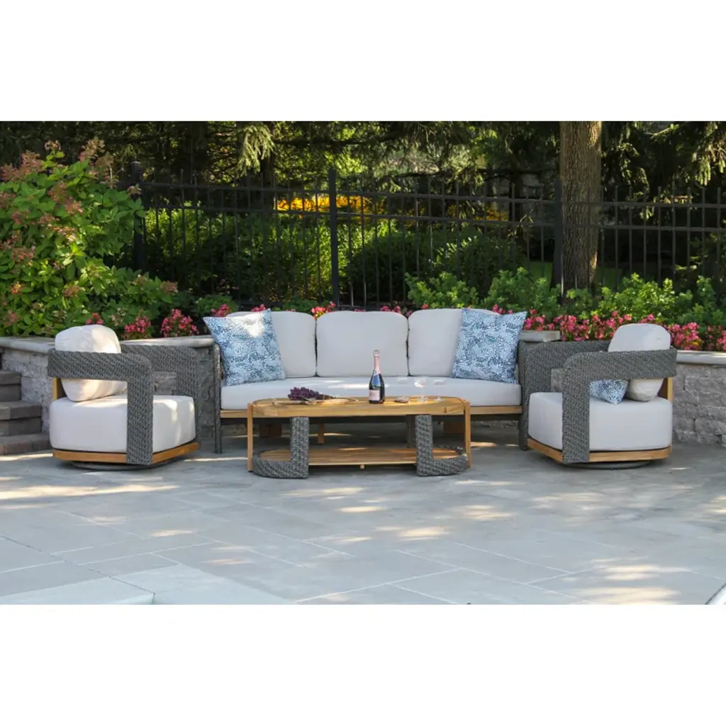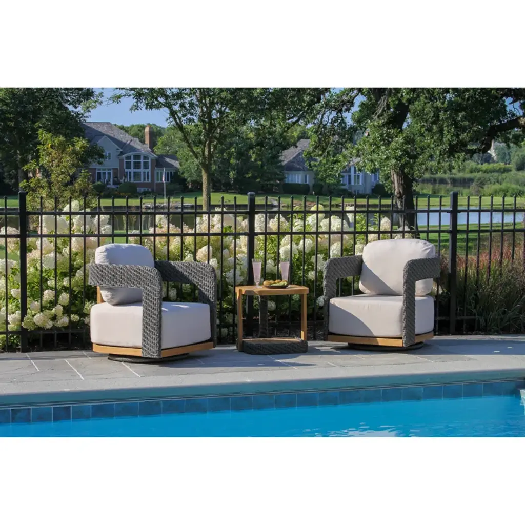 Estate Teak & Wicker Outdoor Swivel Lounge Chair With Sunbrella Cushions