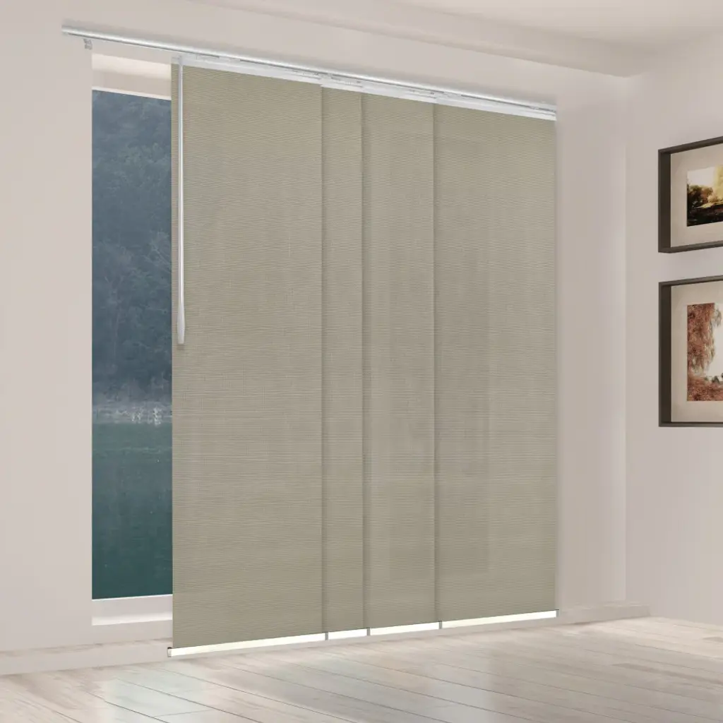 Central Design Products is pleased to introduce a new innovative panel track that offers easy 2-way installation, adding an alluring style and refined touch to your home decor. The single rail design of the track is sleek, compact, and reduces the overall footprint and weight of the installation, eliminating bulky, intrusive window treatments. Adjusting the panel height is a breeze � simply trim the panel, re-attach the liner, and install the panel weight. Detailed instructions are included.The panel track also features a patented slider design, made with aluminum and fitted with bearings that allow for durable and smooth operation. The sliders are stacked closer together than conventional panel tracks, reducing light bleed coming from the gaps between panels. This track has endless uses from dividing rooms, garages, offices, and closets to decorating windows and patios. Available in larger sizes including 8, 10, and 12 panels. Extends from 48-88� wide. Each panel measures 23.5" wide and 91.5" tall, with a total installation height of 94" (includes the 2.5" rail track). The track can be wall or ceiling mounted. The panels can stack on the left or the right. The clearance from the wall is extendable from 1.25� to 3.25� and projection from the wall is extendable from 3� to 4.25�. Estelle panel is made from 85% Vinyl 15% Polyester, with a light filtering shade that blocks 60% of the light.