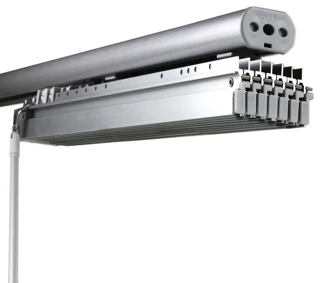 Central Design Products is pleased to introduce a new innovative panel track that offers easy 2-way installation, adding an alluring style and refined touch to your home decor. The single rail design of the track is sleek, compact, and reduces the overall footprint and weight of the installation, eliminating bulky, intrusive window treatments. Adjusting the panel height is a breeze � simply trim the panel, re-attach the liner, and install the panel weight. Detailed instructions are included.The panel track also features a patented slider design, made with aluminum and fitted with bearings that allow for durable and smooth operation. The sliders are stacked closer together than conventional panel tracks, reducing light bleed coming from the gaps between panels. This track has endless uses from dividing rooms, garages, offices, and closets to decorating windows and patios. Available in larger sizes including 8, 10, and 12 panels. Extends from 110-153� wide. Each panel measures 23.5" wide and 91.5" tall, with a total installation height of 94" (includes the 2.5" rail track). The track can be wall or ceiling mounted. The panels can stack on the left or the right. The clearance from the wall is extendable from 1.25� to 3.25� and projection from the wall is extendable from 3� to 4.25�. Estelle panel is made from 85% Vinyl 15% Polyester, with a light filtering shade that blocks 60% of the light.