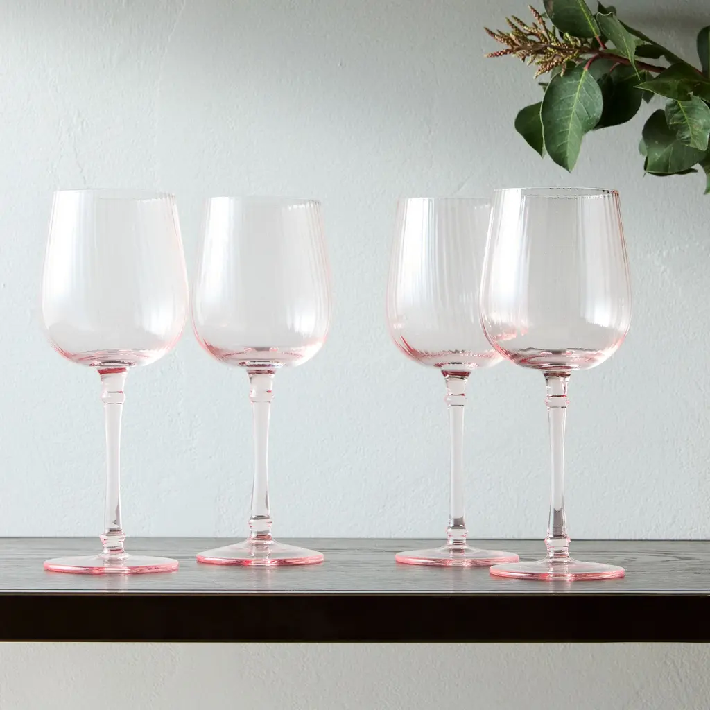It's inspired by heirloom glassware. Each glass is hand blown by glass artisans. Brings iridescent color to your table setting. Includes six glasses for easy coordination.