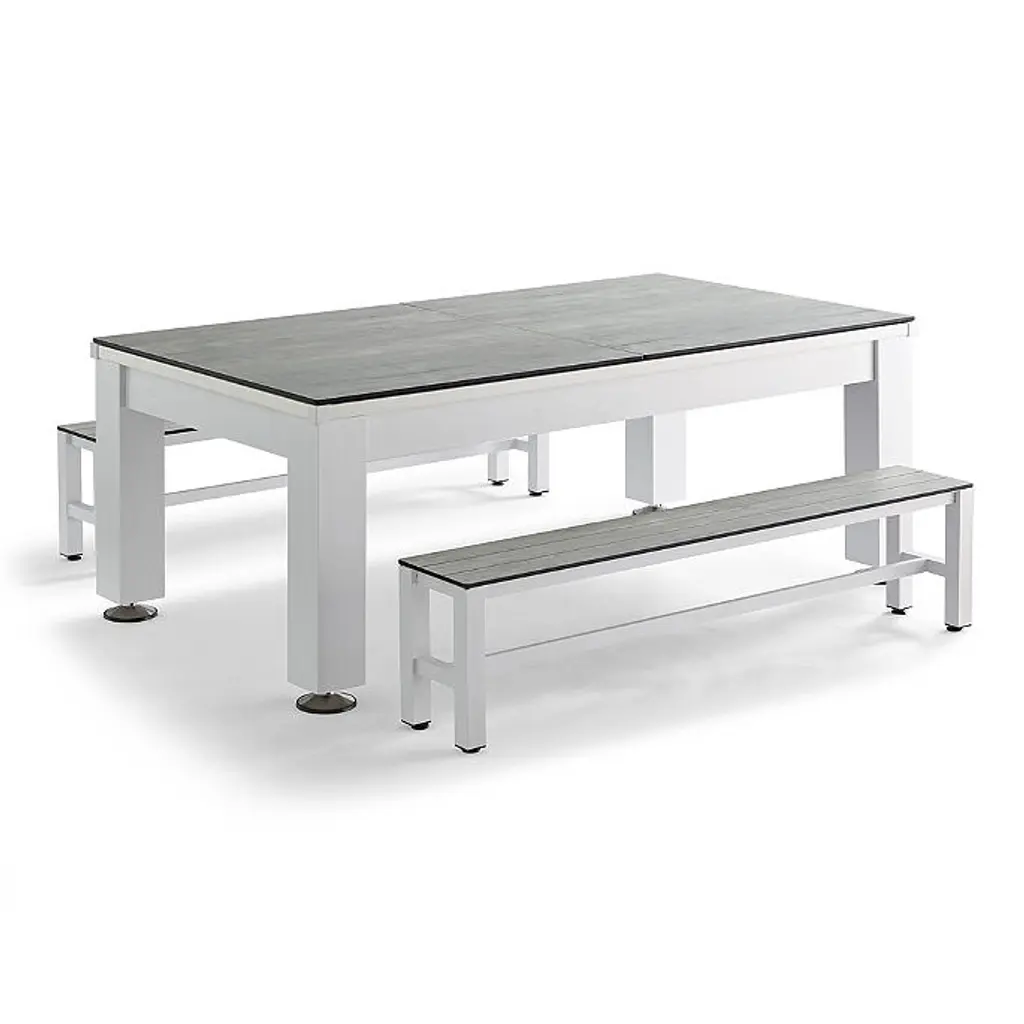 Crafted of weather-resistant materials, these durable benches are designed to transform your Esterno Outdoor Pool Table (sold separately) into a dining table. Crafted of weather resistant pearl board with a durable aluminum frame Complements the Esterno Outdoor Pool Table (sold separately) Some assembly required By Imperial At Frontgate, our primary focus is quality. We guarantee that every product we sell will stand up to the supreme test – our customers' satisfaction. To learn more about our policies, visit our Shipping & Processing, Returns & Exchanges and Warranty & Price Guarantee pages.