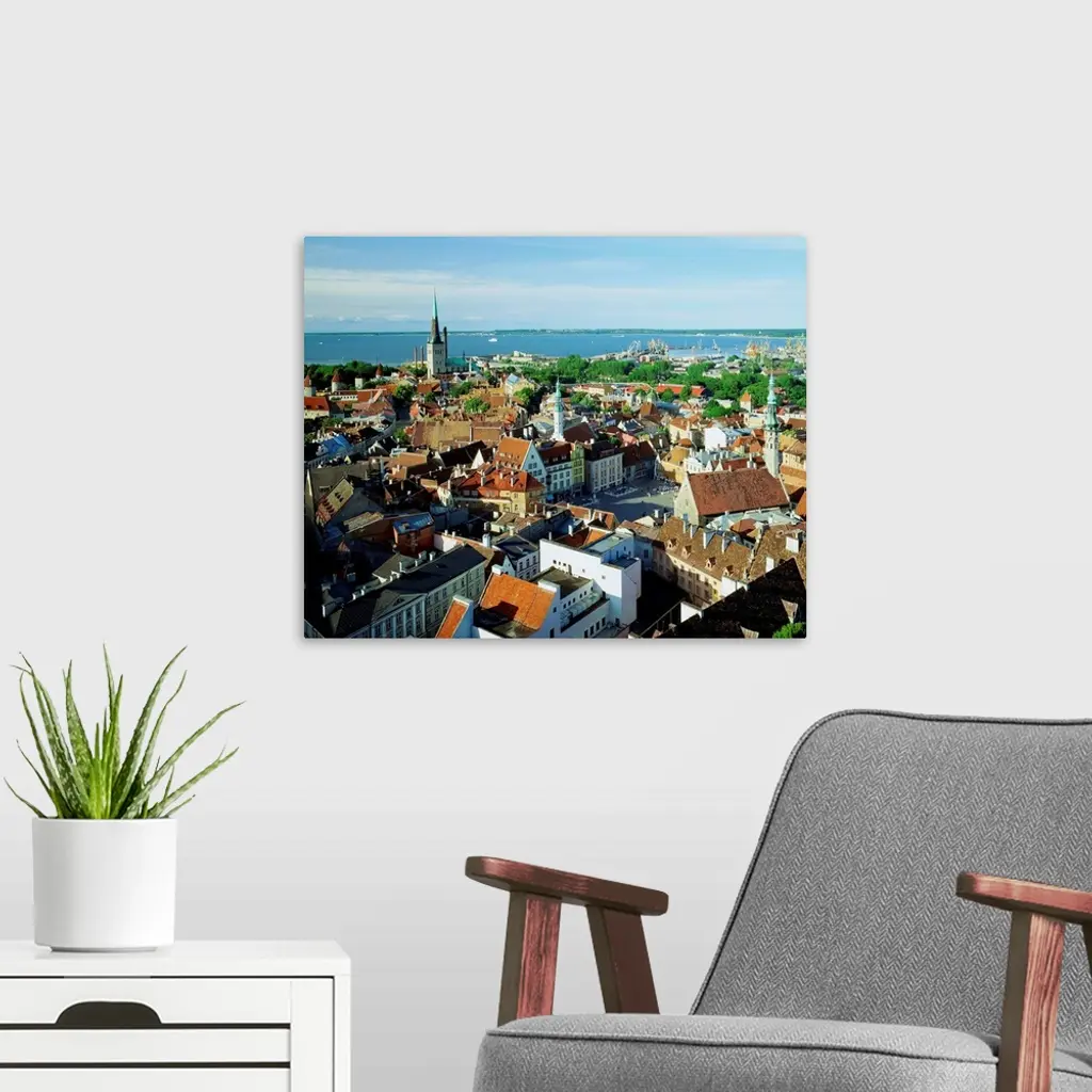 Estonia, Tallinn, View of the old town wall art for home and office decor. Discover canvas art prints, photos, mural, big canvas art and framed wall art in GreatBigCanvas.com's varied collections.