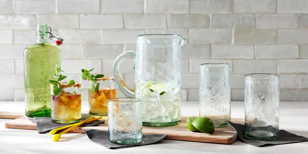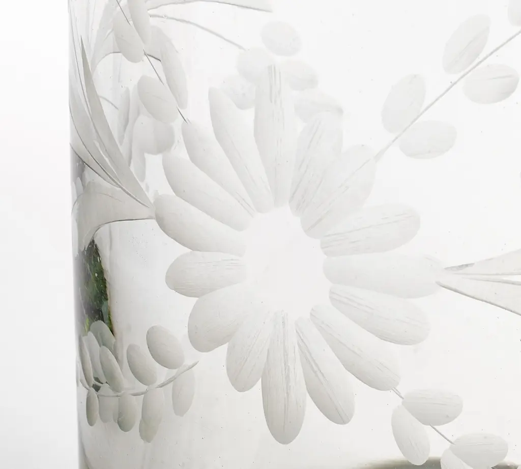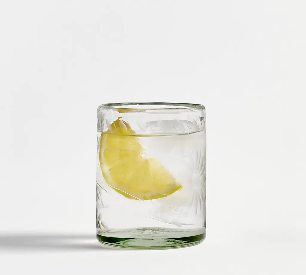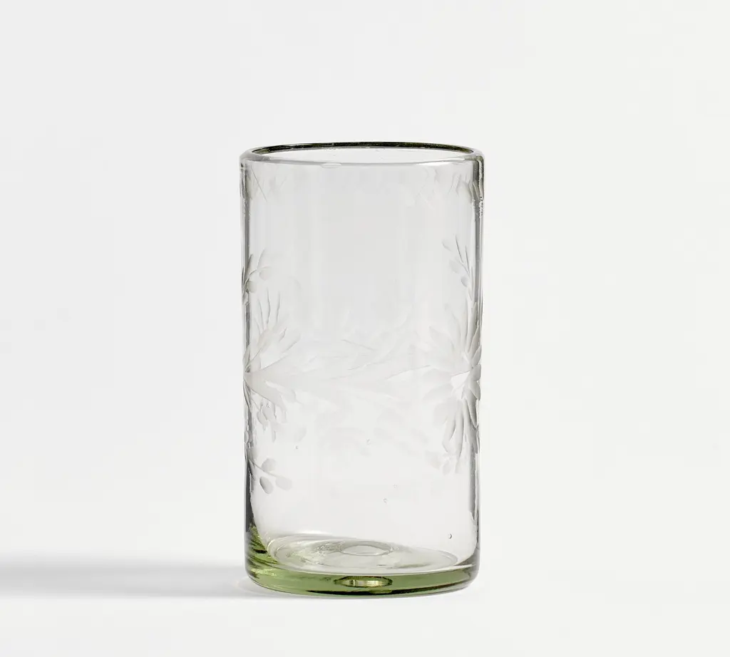 Etched Floral Recycled Glass Drinking Glasses - Set Of 4