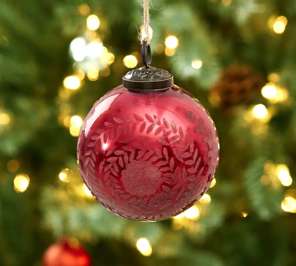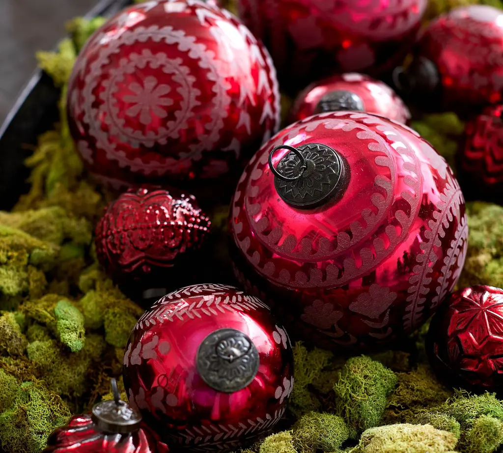 Celebrate a classic Christmas. A hand-etched pattern and festive finishes give our mercury glass ornaments the charming nostalgia of antiques. It’s a timeless look that recalls thick sweaters, hot cocoa, tightly laced ice skates, and snow angels.