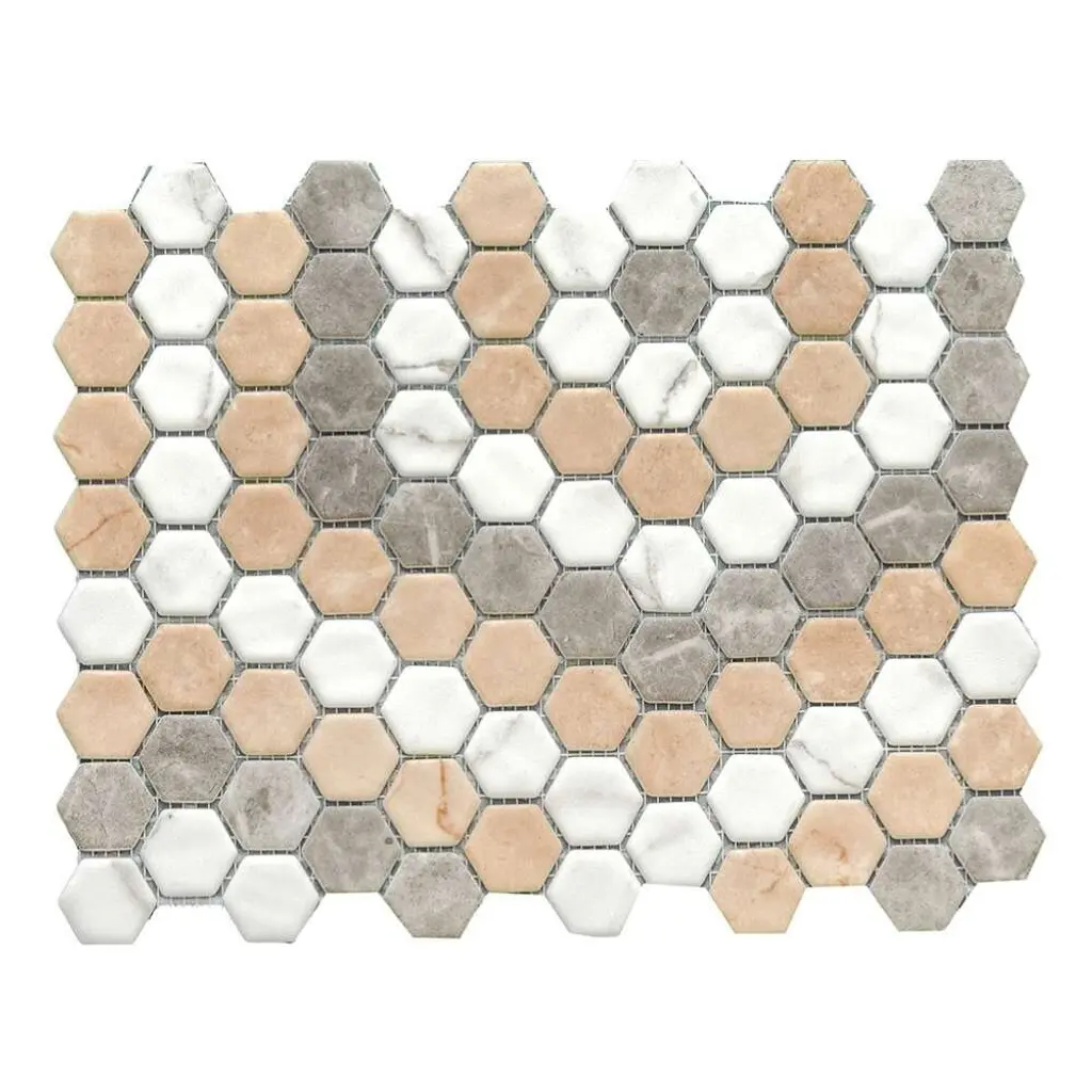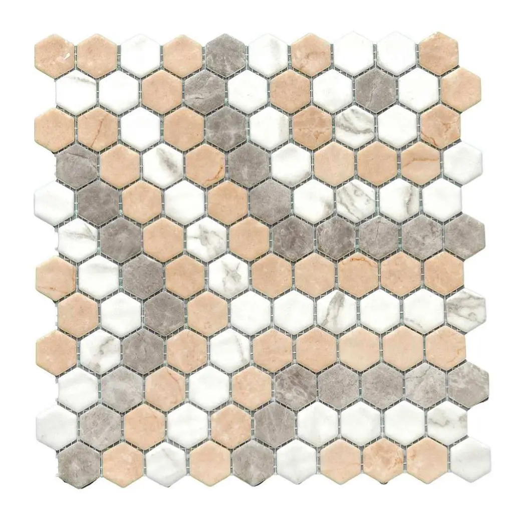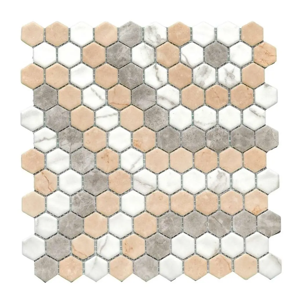 Carefully designed combinations of timeless hex in neutral tones and subtle details are designed to enhance any residential project and maintain its originality. Made and designed in Spain, this 98% recycled, sustainable mosaic is meant for both floor and wall applications while also being suitable for dry, pool, or wet areas. The Tile Life's Eterna Hex Glass Mosaic collection stands the test of time and provides your home with long-lasting beauty.FEATURES:DIMENSIONS:
