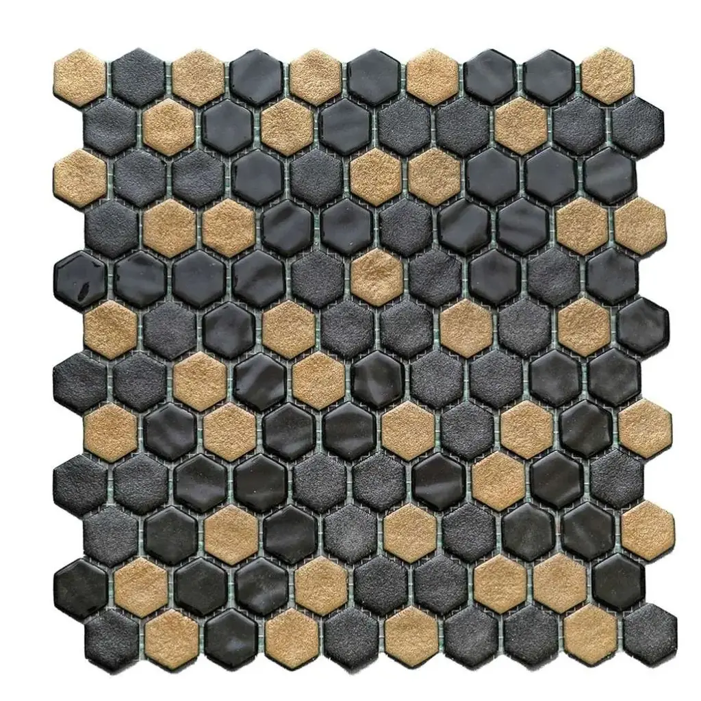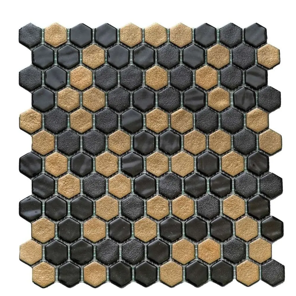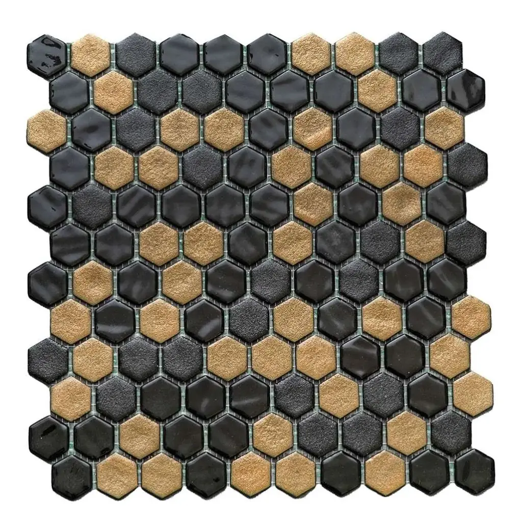 Eterna Hex 1" X 1" Glass Mosaic Floor And Backsplash Wall Tile - 1 Sheet (0.95 Sq. Ft.) - Black & Gold