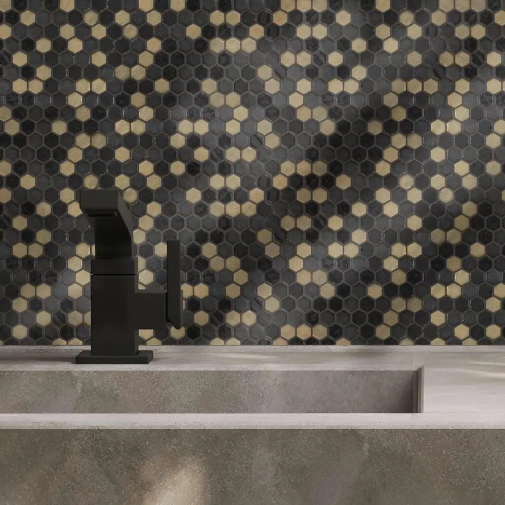 Carefully designed combinations of timeless hex in neutral tones and subtle details are designed to enhance any residential project and maintain its originality. Made and designed in Spain, this 98% recycled, sustainable mosaic tile is meant for both floor and wall applications while also being suitable for dry, pool, or wet areas. This glass mosaic tile comes in various colors, all offering their own unique style and variation. The Tile Life's Eterna Hex 1 inch x 1 inch Glass Mosaic Floor and Wall Tile collection stands the test of time and provides your home with long-lasting beauty. FEATURES:DIMENSIONS: