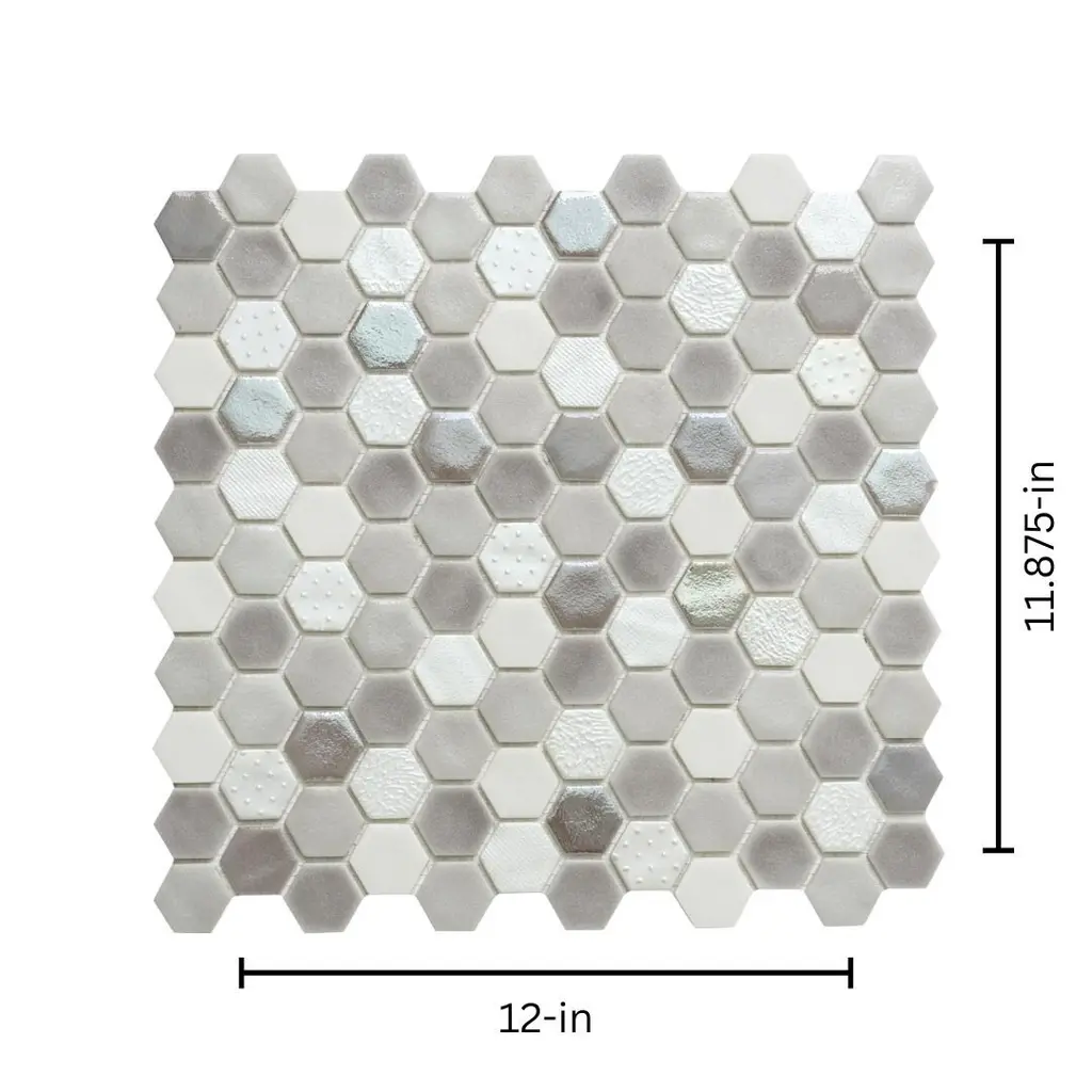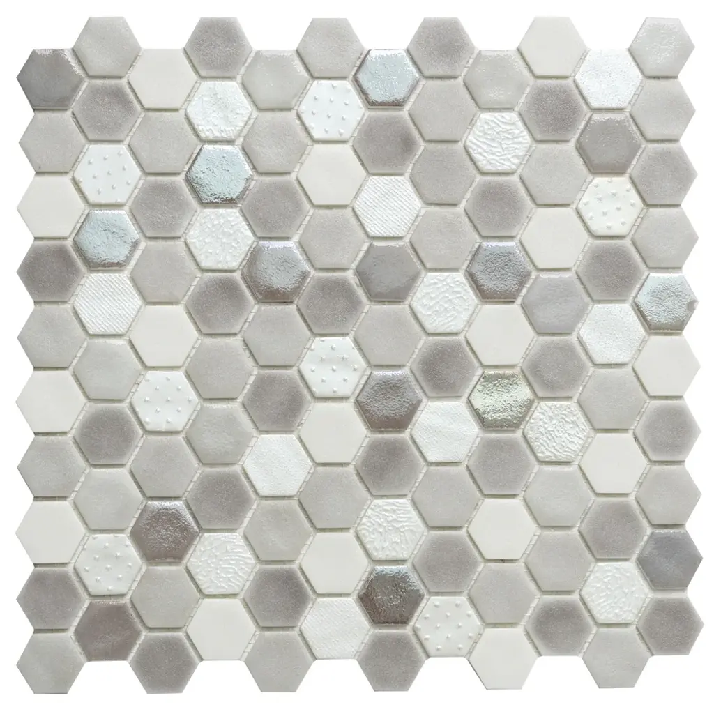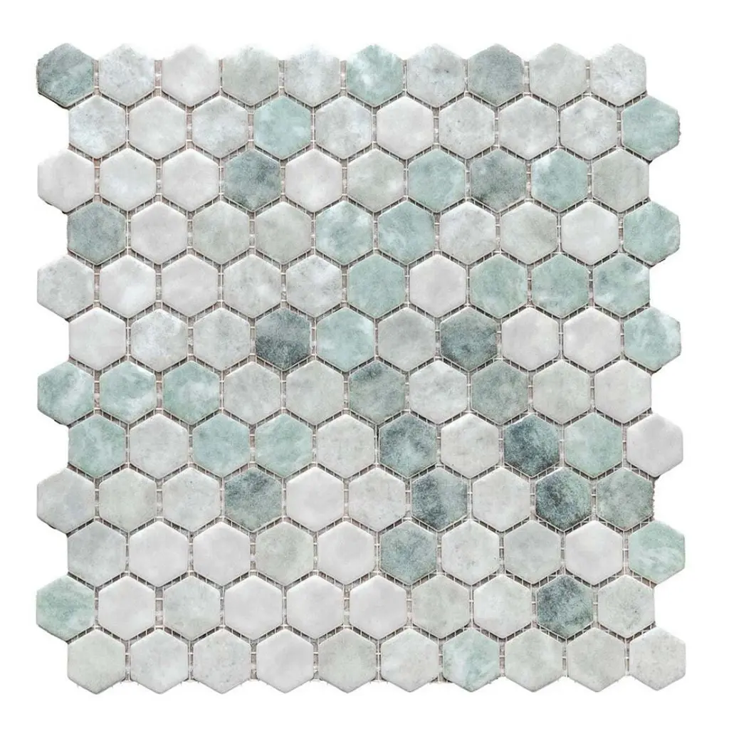 Carefully designed combinations of timeless hex in neutral tones and subtle details are designed to enhance any residential project and maintain its originality. Made and designed in Spain, this 98% recycled, sustainable mosaic tile is meant for both floor and wall applications while also being suitable for dry, pool, or wet areas. This glass mosaic tile comes in various colors, all offering their own unique style and variation. The Tile Life's Eterna Hex 1 inch x 1 inch Glass Mosaic Floor and Wall Tile collection stands the test of time and provides your home with long-lasting beauty. FEATURES:DIMENSIONS: