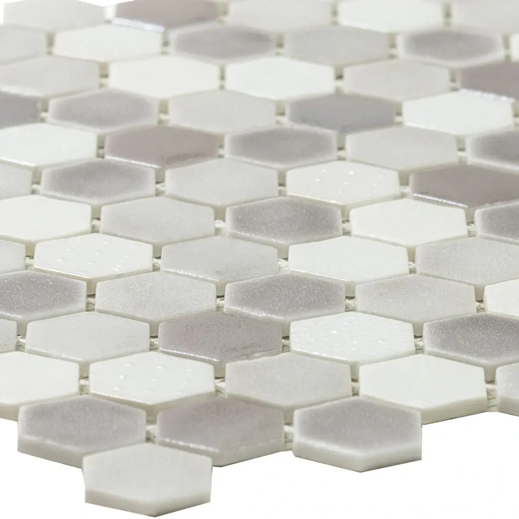 Eterna Hex 1" X 1" Glass Mosaic Floor And Backsplash Wall Tile - 1 Sheet (0.95 Sq. Ft.) - Grey