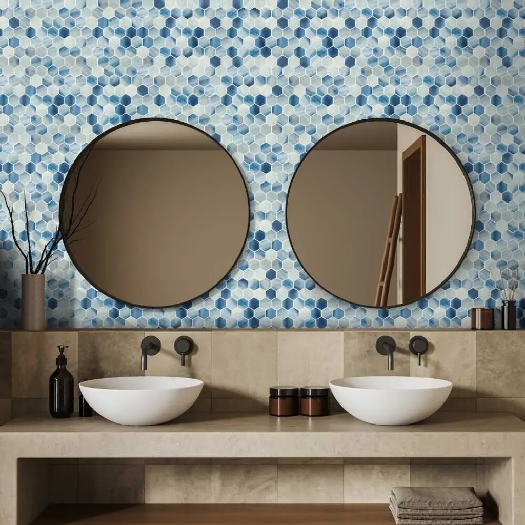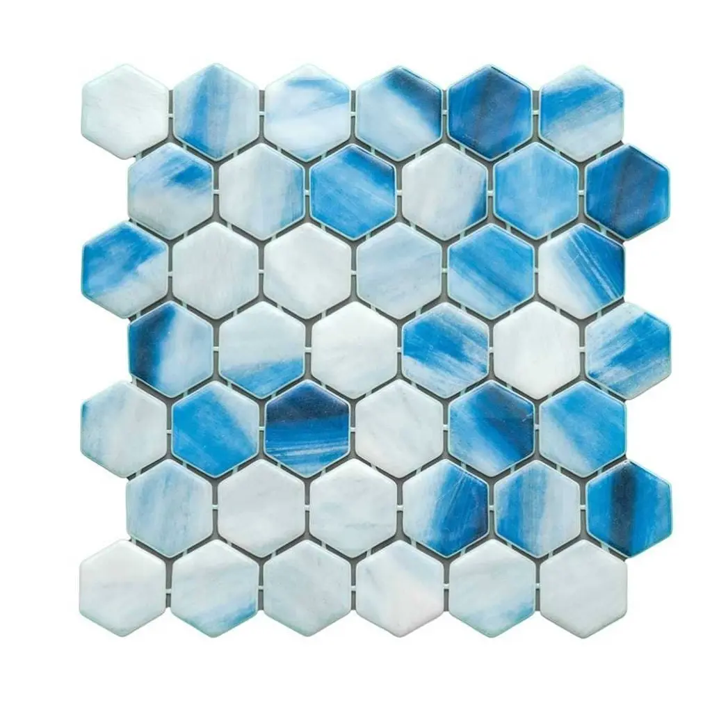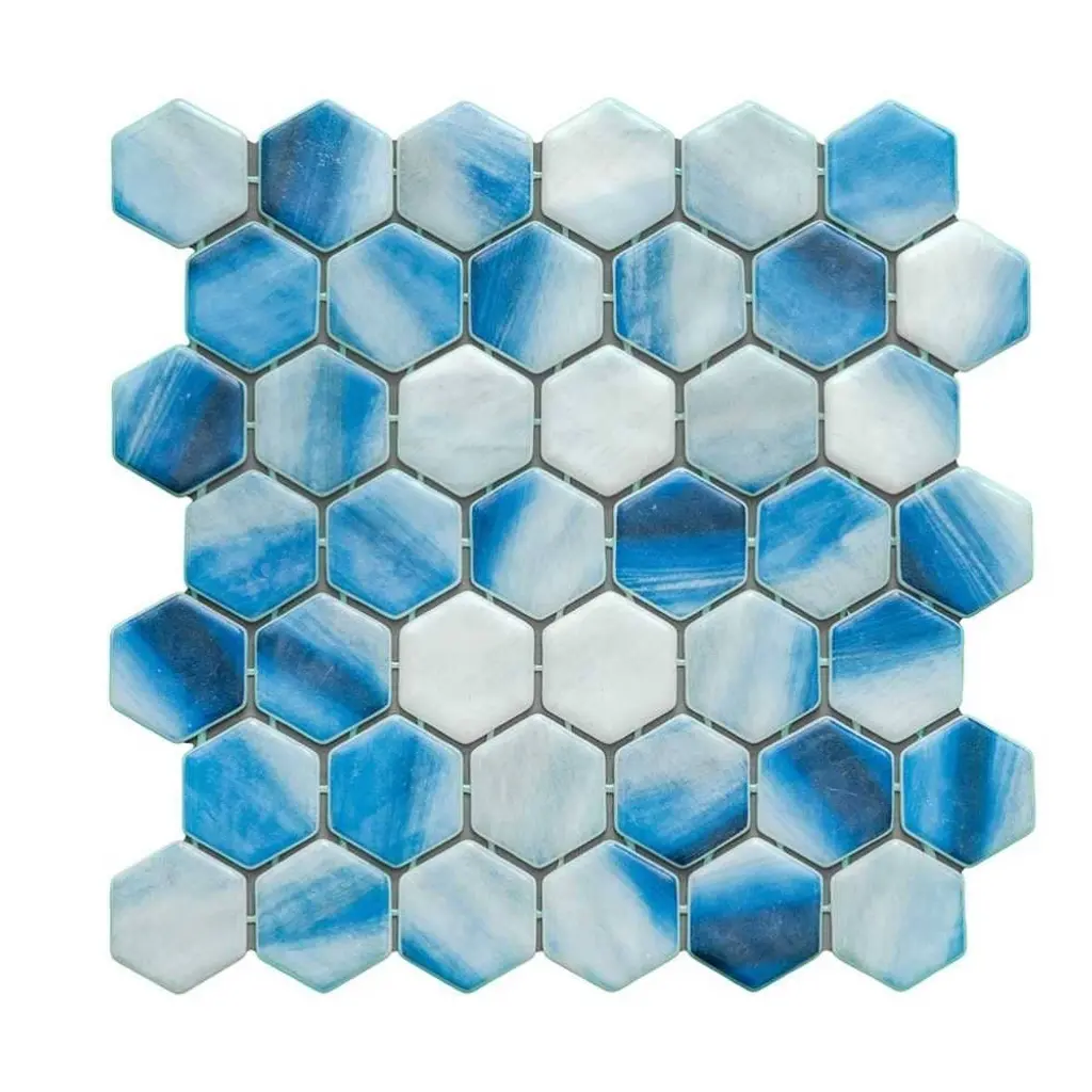 Looking for a unique multicolored checked tile? Check out The Tile Life's Eterna Hex Mosaic for beautiful multicolored patterned tile. This mosaic collection features a stunning combination of elegant marble and stone textures covering each mosaic, creating endless possibilities and combinations for decorating your environment. A grain that recalls the marble finesse and realistically recreates the stones, taking us to its natural origin. Made and designed in Spain, this 98% recycled, sustainable mosaic is meant for both floor and wall applications and is suitable for pools and dry and wet areas. FEATURES:DIMENSIONS: